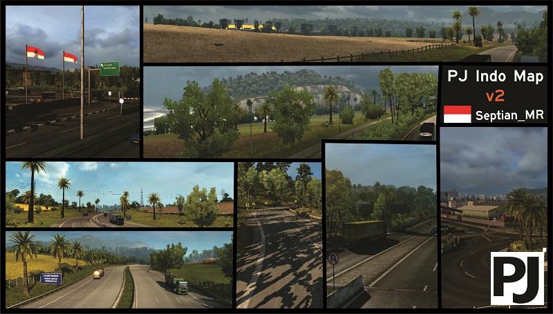 Changelogs: – Compatible for version 1.31. – IMPROVED WHOLE AREAS in northern part (left-side traffic). – Added more new Indonesian signs and navigations. – Added more enchanted vegetations and fields. – Few Bugs fixed. Note: – Not require all maps DLC. – This map can be combined by other add-on maps (ProMods, RusMap, Project Balkans, TSM, EAA, etc.) – More information look at the readme. Hope you like and enjoying this mod without any problems. Thank you! Special thanks to: Euro Truck Simulator 2, all mods inspiring me, all of comments & suggestions, and more. Credits: Septian_MR Credits: Septian_MR |