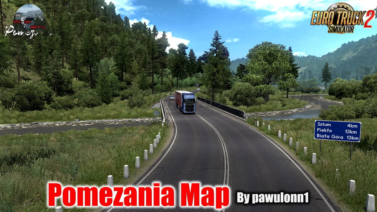Changelog v1.4 Update for 1.43 & convoy Standalone map Scale 1: 1 12 cities and settlements Many kilometers roads Own objects on the map Beautiful landscapes Interesting junctions Many attractions Credits: pawulonn1 |
