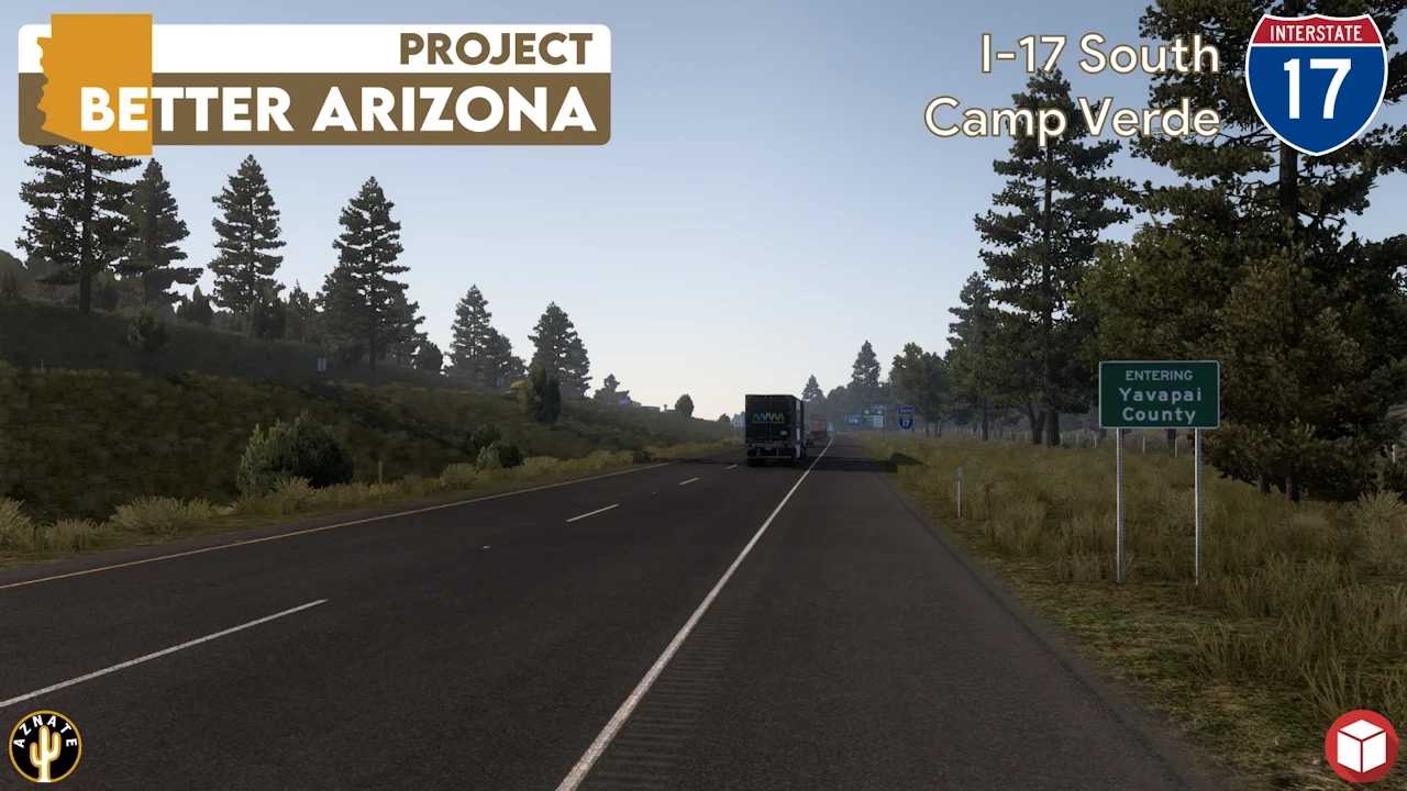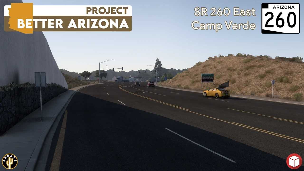 Changelog v0.3.1 Compatibility with ATS 1.48 Added the town of Mayer, Arizona Added custom stop signs & street signs across the project area Various small bug fixes Better Arizona is a map mod project for American Truck Simulator that aims to improve existing cities and add new towns and roads to the state of Arizona in the game. Credits: AzNate |
