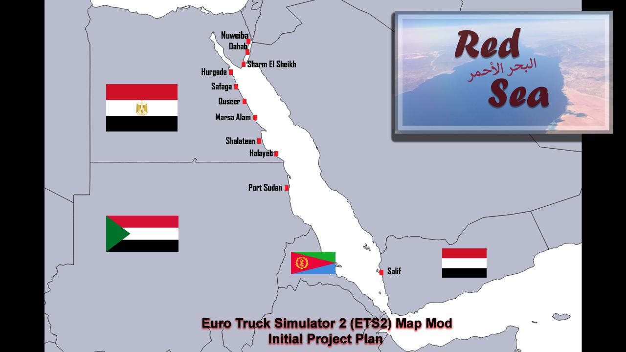 Welcome to the Red Sea! This map mod will connect the ProMods ME road from Taba south into a whole new area on ETS including cities up and down the Red Sea coastline. Having flown over the Red Sea many times in the real world, it's quite a beautiful area full of history, trade, wonderful towns, and amazing hospitable people. This area deserves representation in our vibrant ETS2 community and of course, provide a nice haul from Somalia or Eritrea up the Red Sea into the rest of Europe. I originally was just making this map for my own personal use, but what fun is that! However, I'm changing my approach to casually editing it to having a daily routine to work on this project. I could always use some help too, especially from those experienced with modeling and asset management and it would be nice to have a co-developer in the event life takes course and I run into limited time in the future. If interested, send me a DM on the Discord. (Username: b738pilot) The image below shows a preliminary plan with realistic "starter map project" goals. In the future, we can expand to Ethiopia and South Sudan and who knows the potential as the road networks in East Africa are not only simple to build but very fun. Precision and detail to the 1:19 scale is given as well. Progress 20 MAY 2020: - Discord and ProMods WIP Forum Post made to engage the community - Road to Nuweiba, Red Sea Map's first city, complete. Construction on Nuweiba is currently in progress. I will most likely release it once Nuweiba is complete to provide a teaser for what's to come. 30 AUG 2020: - Red Sea Map is officially released. Version 1.0 contains the road connection south of ProMods ME 2.50's Taba, the city of Nuweiba, and the small town of Dahab. Special thanks to our beta testing team who worked diligently and hard this past week to get this map released to patient fans! Expand your ETS2 map, we'll keep it going down through Africa! Credits: jmiovine |
