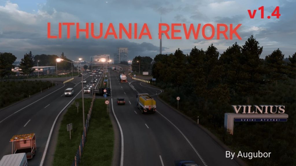 “Lithuania Promods add-on” adds a lot of new roads in north part of Lithuania. “Vilnius rework” map mod rebuilds biggest part of Vilnius city and adds a lot of new areas to visit! Changelog 1.4 -Fixed road connection near Augustov in Poland. -Real companies names added all around Vilnius. -Gas stations improvements and real names! -Bugs fixing in Vilnius. -Some improvements of Vilnius map. -Brand new DEPO prefab in Vilnius Credits: AUGUBOR Credits: AUGUBOR |