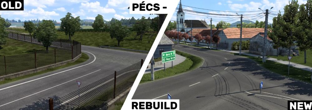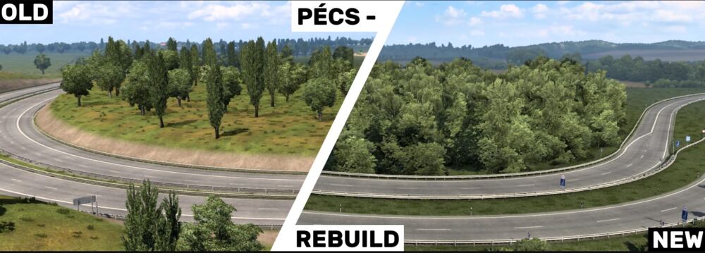 Version 1.1 (1.44, PM 2.61) Rebuild the junction M7x68 Reskin the Road 68 (E661) New town – Mohács New road 56 and 57 (E73) Some improvement in Pécs Version 1.0 (1.43, PM 2.60) The first and the important: Pécs. I deleted the old city and building a new one. New roads and intersections. New signs, buildings, vegetations. New companies. M60: I removed the old resting place I rebuild the/build new junctions I finished the highway to the end M6: I rebuild the tunnels. Now in-game the M6 has 4 tunnel instead of 3 I rebuild the M6-55 junction I added the M6-57 junction and rebuild the M6-M60 junction Road 6(from Pécs to Barcs): Full rebuild New intersections New village: Darány Others: Reskin of the road 55. Credits: dhort_ok Credits: dhort_ok |