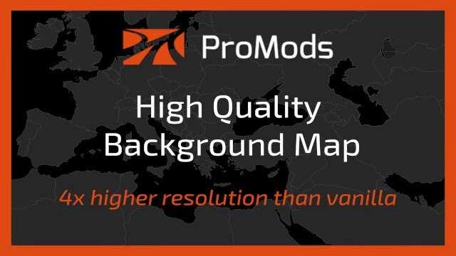 Changelog for version 1.7.1: Fixed incorrect full_detail_config.sui file. High quality background map for ProMods, RusMap, Southern Region, RoEx, The Great Steppe, etc… Load above all map mods. Tested on 1.47 with ProMods, ProMods Middle East, ProMods The Great Steppe, RusMap, Southern Region, RoEx, and Red Sea Map. No map mods other than ProMods are required to use this mod Credits: Dowl |