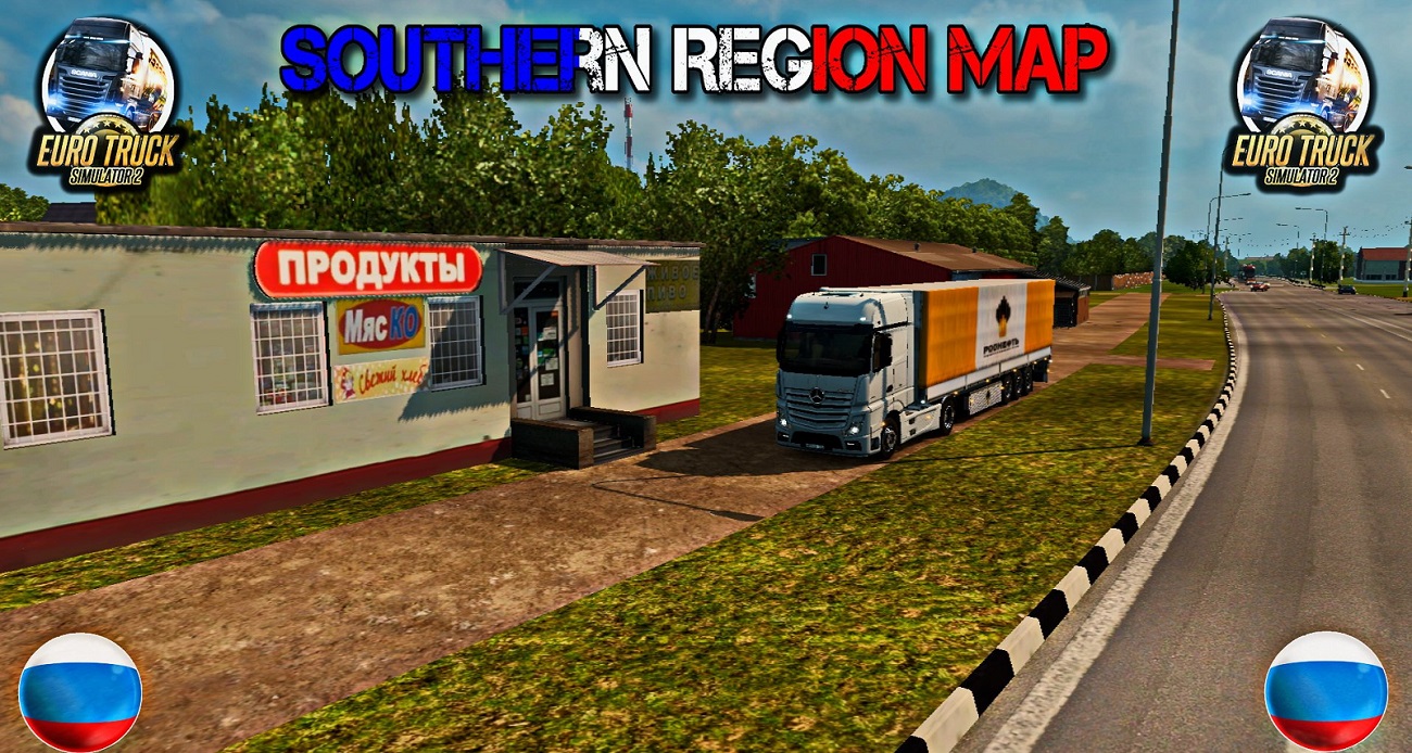 "Southern Region" map - to visit the south of Russia! "Southern Region" is a new free project dealing with the development of the map of the South Federal District of Russia for the "Euro Truck Simulator 2". This card is perfect lovers of Russian atmosphere, the atmosphere of the South. Currently on a map of the regions represented only Krasnodar region, which consists of 17 and settlements, including both city and village. In the future, such as the regions of Stavropol and Rostov region. Although the card is still very small, but I think it will find its "consumer" New version 7.0.0: Supported versions: RusMap , ProMods , Russian open spaces , the Great Steppe , packs of traffic jazzycat Unsupported modifications: modifications that change the season. New Changes: – Many new roads and settlements – Improved nature – Optimization improvement – Many roads and settlements have been reworked(including Anapa, Novorossiysk) -Added lineup of main tractors KAMAZ (5490neo, 65206,65207) -Redesigned street lighting with the use of the Soviet/Russian lamps with realistic dispersion of light – Realistic traffic (traffic in cities Ls. transport, trains, various maneuvers ai t/s) – Realistic model of road infrastructure(Variety of road signs, road markings) – Many realistic post-Soviet bases) – Three new garages(Krasnodar, Kropotkin, Rostov-on-don) – Lots of new attractions and historical facts For version of game: 1.30.x Required DLC: “Going East”,”Scandinavia”, “Viva La France” If you play with ProMods or other modifications containing the file game_data.sii, and you need purchase / improve one of the three branded garages (located in Krasnodar, Kropotkin, Rostov-on-Don), then connect this fix above all active modifications. After carrying out all manipulations with the garage, fix it is possible disable. links: http://uploadfiles.eu/yy8xw43iaf69/SRmap_7.0_extras_1.7z.html http://uploadfiles.eu/hazo62ahs6ak/SRmap_7.0_extras_2.7z.html Credits: SimKA |