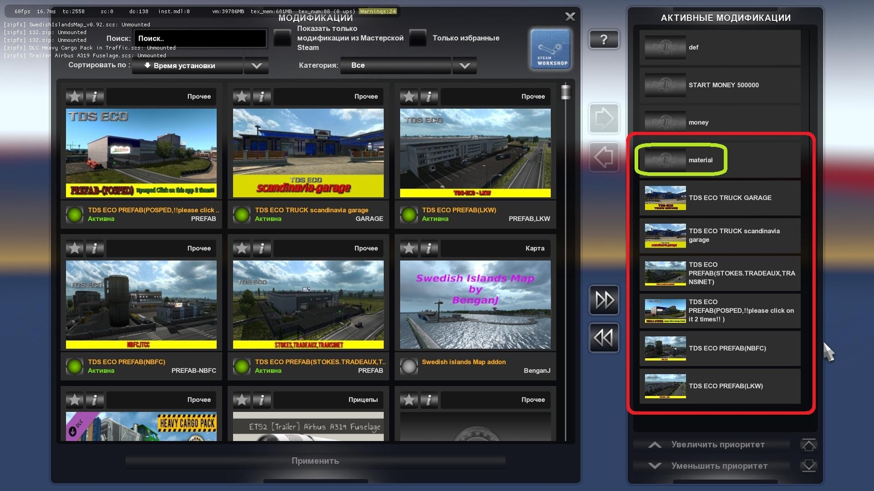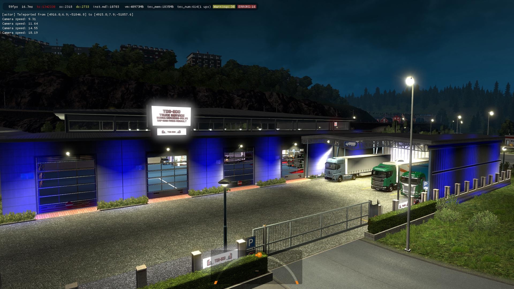 Created new places of loading and unloading in companies. Created new large garages for the standard map SCS, Scandinavia, France and Italy All renovated companies and garages are equipped with an animated gate with visual information and beautiful lighting in the dark. On the territory of garages playing music Red grass issue fixed Connect in a high priority manager Updated companies: - Stokes - Tradeaux - Transinet - Posped - WGCC - Nbfc - Itcc - LKW Credits: TDS-ECO |
