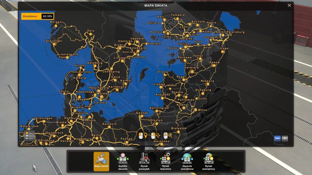 World map background. Water areas are now colored blue. The mod will not work properly with the Promods based combo maps. Mod updated for v1.44 Credits: Grohun666 |