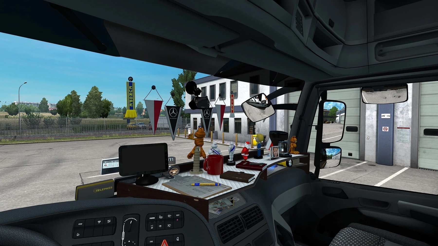 A custom made table and wind-shield slots set for the MB Actros MP3. Includes the UK variant Features: Table with 38 slots Wind-shield set with 37 slots HQ textures Normal maps and baked AO Compability: Mod is compatible with SCS interior and any truck using stock SCS locators for the interior addons Updated for 1.42 game version. Credits: obelihnio |