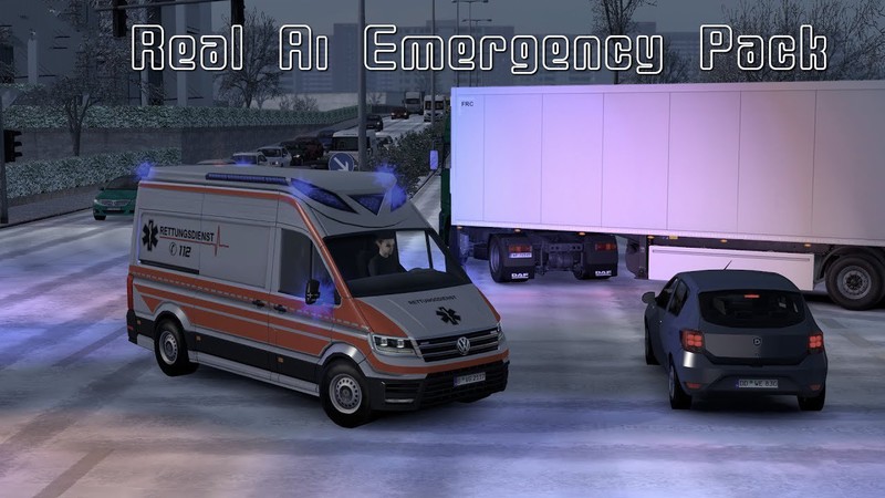 – Mod adding in traffic on-duty versions of all SCS stock police and emergency vehicles with beacon and personalized siren sounds – All vehicles have personalized sounds for all EU countries covered by SCS – each vehicle can spawn only with beacon or with beacon and sound, while the sound is also not continuous – each siren sound has a length between 20-30 seconds and the gap until the sound will start again is random (siren sound cannot start while Ai is static) – on-duty vehicles equipped also with airhorns that will play randomly when static – all vehicles have also engine sound (imported from my Real Ai sounds) – no sounds for vehicles spawned in road events other mod features only available if used together with my Real Traffic Density mod: – Emergency vehicles have own speed class, however every Ai will obey traffic signs and red lights – spawn on all type of roads with various density (still higher in cities) – default police and emergency (without beacon and sounds) are restricted only to local roads – a silent version of Real Emergency vehicles (with beacon but less probability of having a sound) can also spawn on local roads – Ai vehicles spawning in cities and motorways will be more likely to have a sound How to use: – unpack the zip file and copy/paste the 2 .scs files in the mod folder – for best experience use the load order recommended in the picture included to the zip file – it works with any possible traffic packs Other recommended mods for harmonization of all Ai vehicles sounds:– Real Ai Traffic Sounds ETS2 – Real Train Sounds ETS2 Credits: author: Cip credits: SCS for default vehicles, FMOD and YouTube for sounds Credits: Cip |