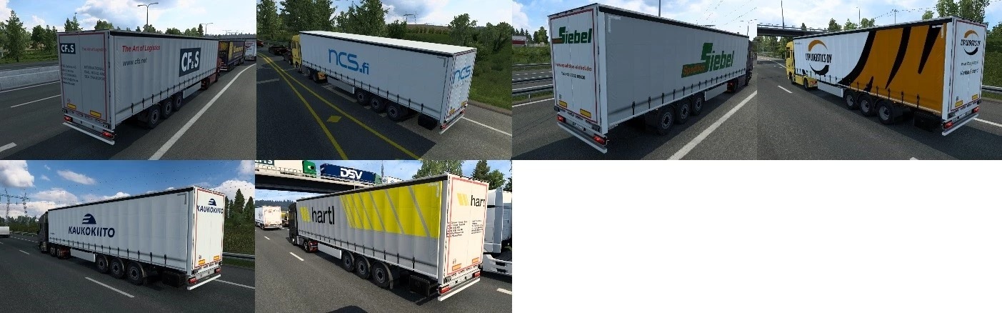 Nissantruck ETS2 Ai Trailers Pack Version 5.0.1 My trailer mods are for the Ai traffic only. My trailers are not ownable. My trailers can be seen in the traffic as ai vehicles only. My ai trailers are not any country,state or Dlc dependent. This ai trailers pack is the version 5. You should be able to see the ai trailers in traffic. Some other trailers mods can affect the trailers in this package, mainly if they have similar company names or similar internal names. If you only use my trailers packs,then they should work fine. This ai trailers pack has been tested with Ets2 1.44 and 1.45. These trailers should work after those versions of the Ets2 will have an update as long as Scs will not update the trailers at all. I will make more version of this ai trailers package later with new trailers and the old ones too. In this package you can find 101 ai trailers. Made by NISSANTRUCK. The company list for the ai trailers: Arla Beweship Blue Water Bring Corona Dan Sukker Danone Dhl Dpd Dsv Euro Leasing Fedex Freja H.essers Hermes Kuehne&Nagel Lkw Walter Milka Nissan Pno Postnord Raben Tnt Ups Weber Willi Betz Xpo logistics Wallenborn Primafrio Db Schencker Dachser Caffrey Scandic Trans Kiitolinja Ntg Hcs Ahola Girteka Freeco Riboni Lago Jost Group Dfds Lidl Agility Fiege Express Trailers Hrx Gartner Waberers Transmar Sovavto Heinz Tip Sisu Via3L Ferroline Group Greencarrier Pema Ewals Cargo Care Heineken Jenty R Group Roadari Ekol Edy Simon Loos Ahrens Yusen Grampian O.Jylhä Oy Gls Geodis Starbucks Vos Polar Special Kaukokiito Jan De Rijk Eddie Stobart Tropicana Marcotran Currie European Nolan Transport Samskip An Transport Leman Intercombi Ceva Oak Ncs Rhenus Savikko Transport Freight Frame Linford Discordia Siebel Logistik in XXL Hartl Ltp Logistics Oy Cf&S Credits: Nissantruck Credits: Nissantruck |