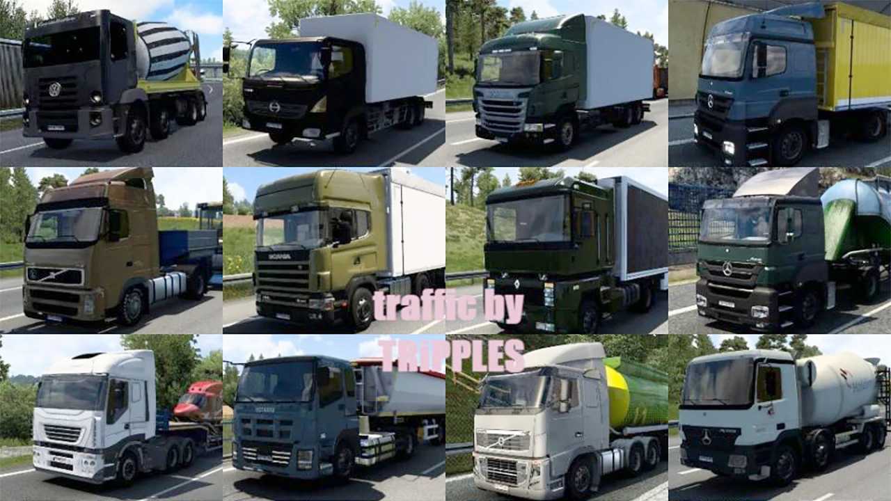 Pack of adapted traffic models under the latest version of the game List of models: Man TGS magnet from jazzycat Volkswagen constellation (concrete mixer) and Scania P310 from Paka “Brazilian traffic” from Obin-Wan Kenobi (Everaldo), Carlos Silva, Eaa Team; Hino 500 Volvo FH12 2009, Mercedes Axor MP3 (with alteration) and Renault Integral from Pack CZ / SK AI Pack by Homers Volvo FM13. Isuzu Giga with Wielton dump truck from SSHUMI Scania 164L Scania P360 Mercedes ACTROS MP2 (concrete mixer) Mercedes Actros MP2. Iveco Stralis MK1. Iveco Stralis Low. Scania Streamline R440. Mercedes Actros MP2 Black Edition Kamaz 6580. Scania p 2016. Changes in 1.9 Added KAMAZ 6580 and Scania P 2016 Changes in 1.8 Added Iveco Stralis Low Cab Credits: TRiPPLES |