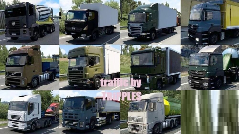 Changes in version 1.5: – all models have been redesigned – added Iveco Stralis MK1 – Added via Streamline R440 – added Actros MP2 Black Edition – removed Volkswagen Meteor (the carpet is in the Brazilian pack from Jazzycat) Volkswagen Constellation (mixer) Scania P310 Hino 500 Volvo FH12 2009 Mercedes Axor MP3 Renault Integral Isuzu GIGA Scania 164l Mercedes Actros MP2 (mixer) Iveco Stralis MK1 Scania Streamline R440 Mercedes Actros MP2 Black Edition Credits: TRiPPLES, Obin-Wan Kenobi (Everaldo), Carlos Silva, EAA Team Credits: TRiPPLES, Obin-Wan Kenobi Everaldo |