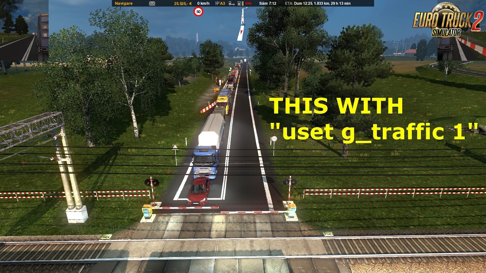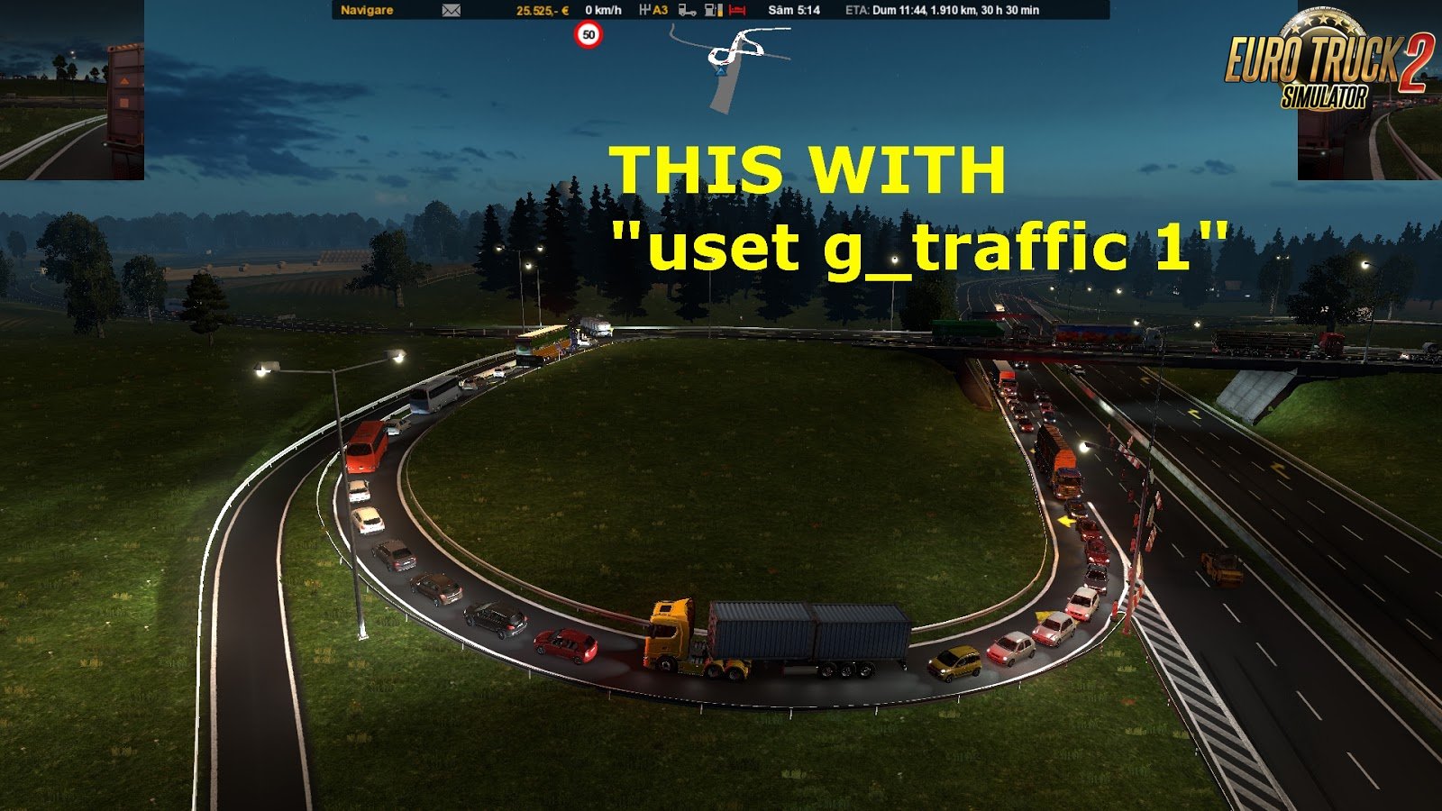 You like traffic jams? The EXTREME edition it's for you. *put above any map mod file Diversified AI traffic based on the important hours of the day and by the type of the road. IMPORTANT! READ THE TIP AT THE BOTTOM! and you will understand why you dont need 3 versions of this mod, like low, normal and traffic jam. You can adjust that on your own. IMPORTANT TIP: OPEN Documents\Euro Truck Simulator 2\config.cfg with notepad or other text editor and look for the line uset g_traffic "X" where X is from 1-10. if you dont have that line just add it! This is the best way to increse the value for your traffic in the game without any mod. You dont need a mod for that! 1 is the lowest value and the traffic is very sparse. 10 is the maximum and this is the way to get your beloved traffic jams (seen in my videos from AI Superlights mod) My mod doesnt interfere with this value, my mod simply realocate existing density by the hour of the day, type of road and type of the vehicle. Credits: Arayas |