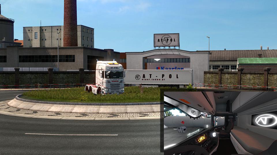 This is a base mod for any VTC just change some dds files and you got your own VTC paintjob for the new gen scania, 2x trailer skins for scsbox, krone and schwmuller.Interior decoration textures are also in this pack so you can make your own mug, dice and so on. This also add’s a base like area in poznan. All the textures contain the AT-POL vtc logo. you can change it and do with it what you want. Credits: Quantor, Graku, SirBlackyAlot, Japheth Rasta.Jr, Kriechbaum Credits: Quantor, Graku, SirBlackyAlot, Japh |
