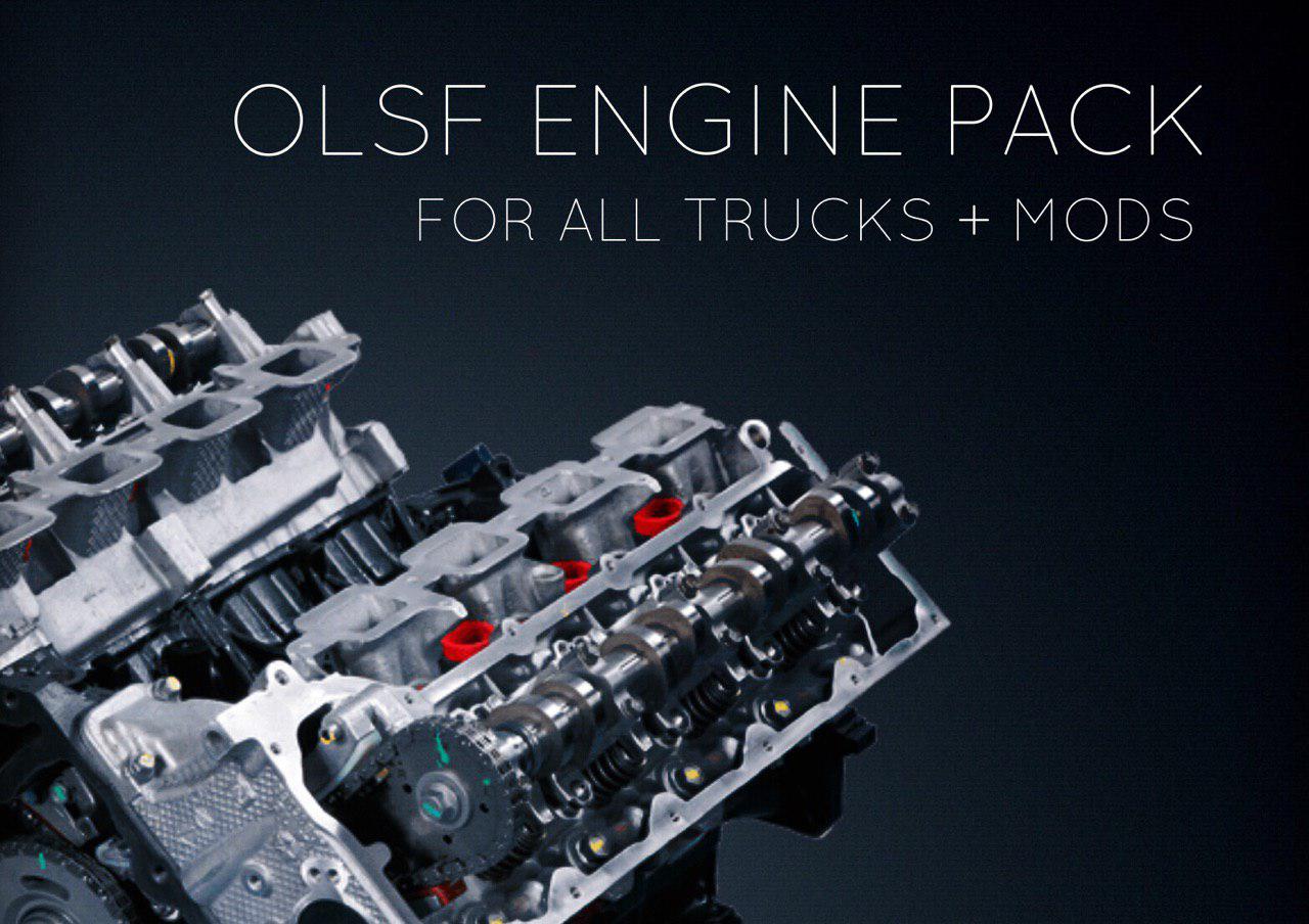 Compatible versions: ETS2 1.34 / ATS 1.34 Supported trucks: – DAF XF, DAF XF Euro 6 – Freightliner Coronado – Iveco Hi Way, Stralis, Strator – Kenworth T680 & W900 – MAN F2000, TGX, TGX Euro 6, TGA – Mercedes Arocs, Actros MP1-MP4 – Peterbilt 389 & 579 – Renault Magnum, Premium, Range T – Scania R 2016, Scania S 2016 – Scania R, Streamline, T (SCS/RJL) – Volvo FH12, FH16, FH, VNL The OLSF engines pushes the virtual motor controller to the limit, using all parameters available for mods. – Immediate delivery of maximum torque at low rpm – Constant delivery of power up to 2500 rpm – Low internal friction to reduce fuel consumption and improved throttle response – Very complex torque curve and power parameters calculated realistically – NEW: Hybrid powertrain with electric drive mode (Only on ETS2). If you experience issues with this mod, set high priority and buy a new truck. Engines included: OLSF V6 Efficiency (Redline: 2000 rpm) 630 HP / 3000 Nm OLSF V8 Efficiency (Redline: 2000 rpm) 780 HP / 3700 Nm OLSF V8 Performance (Redline: 2500 rpm) 950 HP / 4500 Nm OLSF V8 Performance+ (Redline: 2500 rpm) 1200 HP / 5700 Nm OLSF V8 Hybrid EV (Redline: 2450 rpm) 1200 HP / 5700 Nm – Only available in ETS2 Changelog (38.0): – Added support for American Truck Simulator. You can use the same mod file in ETS2 1.34 and ATS 1.34. Credits: OLSF Credits: OLSF |