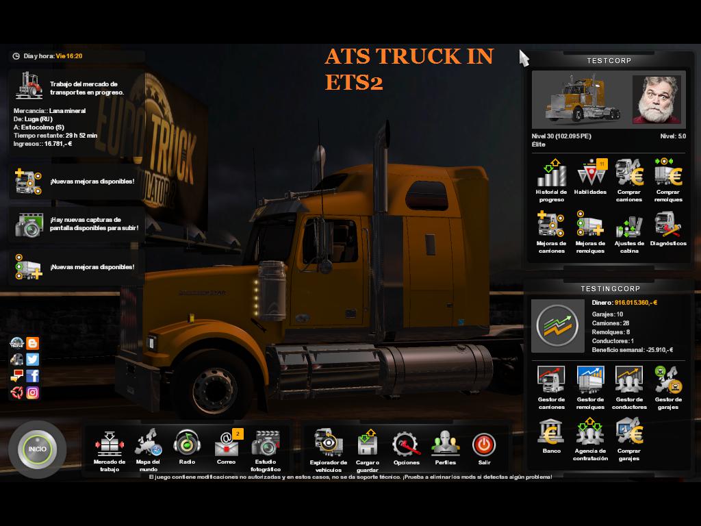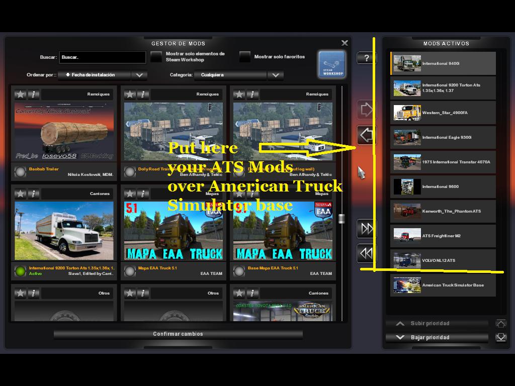 This mod allows you to run ATS mods on ETS2, all you have to do is place your favorite mod on top of ATS Mods Base as shown in the attached image. Tested at ETS2 1.35, should work at 1.36 to 1.38 Must use ATS 1.35 mods Credits: kryyx Credits: kryyx |