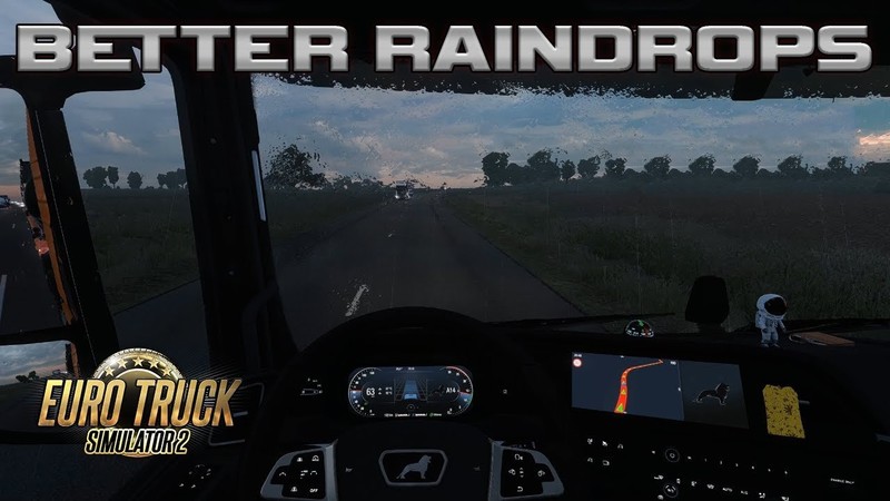 Changes: New particle textures Improved compatibility with grimes Frosty Winter Add new texture and significantly increase number of raindrops. Improve physical behaviour of particles, now their spawn will be more affected by truck position relatively to rain inclination. It makes a huge difference and vastly improve perception of weather! Just try it yourself! Detailed description of config parameters in \def\vehicle\interior_glass_config.sii in case you want to play around with the settings yourself Important! Mod is fully compatible with both ATS/ETS2 and any other weather/sound mods, just give it a priority and place on top of others. Personally, I love to use it with Improved SCS Rain mod for a better sound experience. Credits: Avelium |