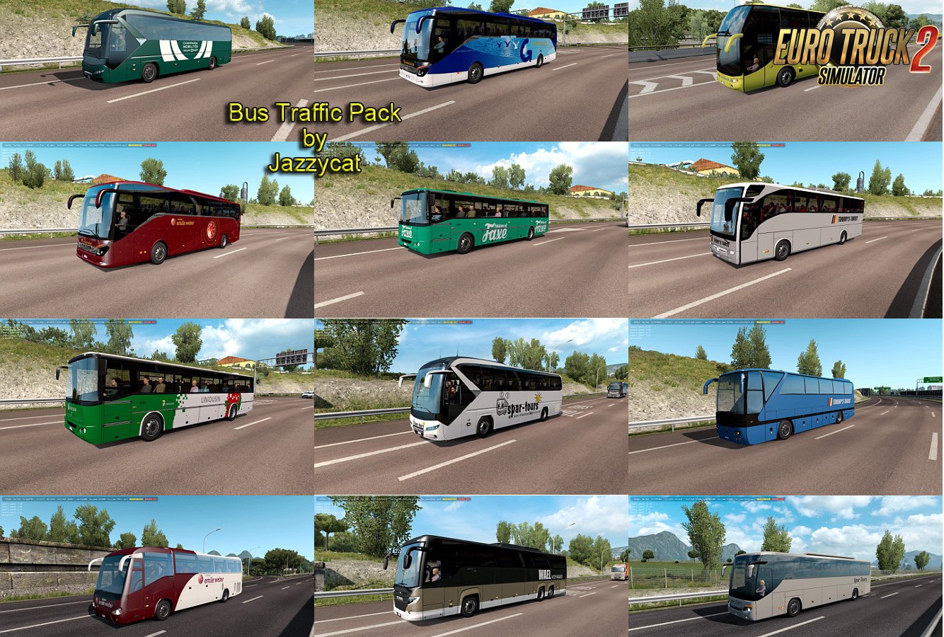 New Version 6.6: – added 12 new skins of real German bus operators. Version 6.5: – added 12 new skins of Danish, Luxembourg and French bus operators . This pack adds in traffic 37 new models of buses with 889 skins (Setra, Neoplan, Volvo, Man, Mercedes-Benz, Ikarus, Ayats, Irizar, Scania, Temsa, Jelcz, Karosa, Caetano). All standalone and works on any maps. Compatible with all Jazzycat packs. Tested on game versions 1.34.x Credits: JC |