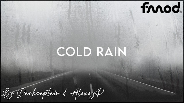 Changelog: – Better resolution for particles/splash textures – Compatibility check for 1.41 Open Beta Features – Textures of raindrops for windows and windshield have been changed – Increased amount of raindrops from inside the cabin – Rain textures have been improved – The effects and behaviors of the drops on the windshield and windows have been changed – The texture and effects of the water particles on the wheels when the asphalt is wet has been changed (affects all vehicles, traffic included) – Realistic rain sounds, such as drops falling in the cabin and the sound of rain with the outside view – Realistic thunders sounds & greater variety (about 20 high quality sounds/samples) Note: The thunder will be heard in an interval of between 1 and 5 seconds when seeing the ‘flash’ (lightning), simulating as in reality. Compatibility & Requeriments – 1.40.x – 1.41.x versions. No errors in game log. – Support for FMOD Sound System. – Compatible with all DLC’s and it should work with Mods Maps – Compatible with Sound Fixes Pack by Drive Safely – Tested with SCS default weather (1.40 version) – Must have high priority in Mod Manager. ‘Cold Rain’ on top (ABOVE) of Weathers/Graphics, Maps and Sound mods. Credits: Darkcaptain AlexeyP (some textures, thanks!) Drive Safely (FMOD Tool parameters compatibility) Robinicus (FMOD Tool guides) Credits: Darkcaptain |