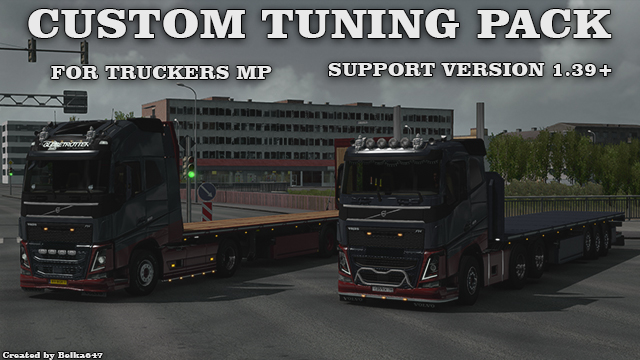 Welcome to the "Truck / Trailer Puzzle Customs" [TPC] project from Belka Customs))) If you don't really understand the essence of tuning, I do not advise using my modifications .. This modification expands the tuning capabilities of trucks by adding new parts from other trucks from the tuning add-ons for them. The modification is independent, except for the necessary modification "BC- [TPC] Part_no_limit". You need to buy and modify in a single player game, you can repair in Truckers MP. There is nothing difficult to use, the main thing is to correctly position the modifications so that "BC- [TPC] Part_no_limit" is always in priority above the rest of the modifications. It is set by a simple selection of a part, in order to completely delete a part, you must first select the Delete Part, then click Delete .. If you find an error while using the modification, please contact me so that I can fix it. Remember to follow Truckers MP's rules to avoid getting banned. Please do not upload to other resources, leave the original link to this modification in the "Steam Workshop". I do not upload my modifications to other sources, except for my group in VK and do not bear any responsibility for them! When downloading from a third-party resource, you can also download a virus! Feature list: -Lowerbar from all tuning dls; -Bullbars from all tuning dls; -Lightbars from all tuning dls; -Rear bumpers from all tuning dls; -Rear and side exhaust from all tuning dls; -LED plate under the windshield of all tuning dls; -Front and rear mudflaps from all tuning dls; -And much more.. -Works in Truckers MP! Supported modifications: BC- [TPC] Part_no_limit BC- [TPC] Trailer_Puzzle_Custom BC- [TPC] Truck_Puzzle_Custom BC- [TPC] Krone_Puzzle_Custom BC- [TPC] Schwarzmuller_Puzzle_Custom Sequence of use (Do everything in a single game): 1. Download the mod; 2. Search for modification "Part_no_limit", it won't work without it !!!!! 3. Go into the game and connect the mods in the profile (Mod Manager); 3.1. We always put the "BC- [TPC] Part_no_limit" modification priority above the others !!! 4. Go to "Service"; 5. Build a truck; 6. Pay; 6.1 Go to Truckers MP. Credits: Belka647 |