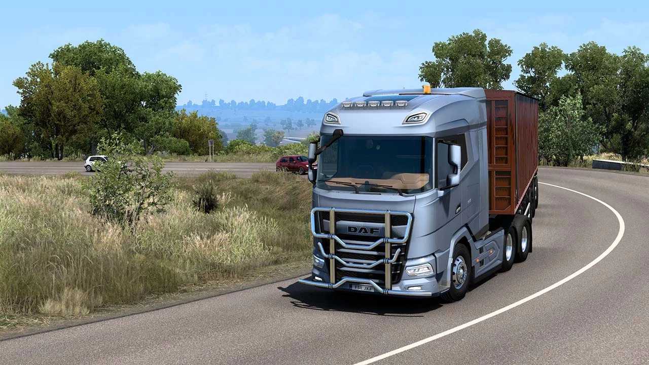 DAF 2021 Colossus Bullbar From the XF Tuning Pack Takes the Colossus bull bar for the DAF XF from the XF Tuning Pack DLC, and makes it available for the new DAF 2021. You’ll find it at the Lower Grill Guard accessory slot. Also supports the DAF 2021 Reworked by Jasper. SCS for the bullbar. I just changed the placement. Of course the DLC is required. Credits: mpie |