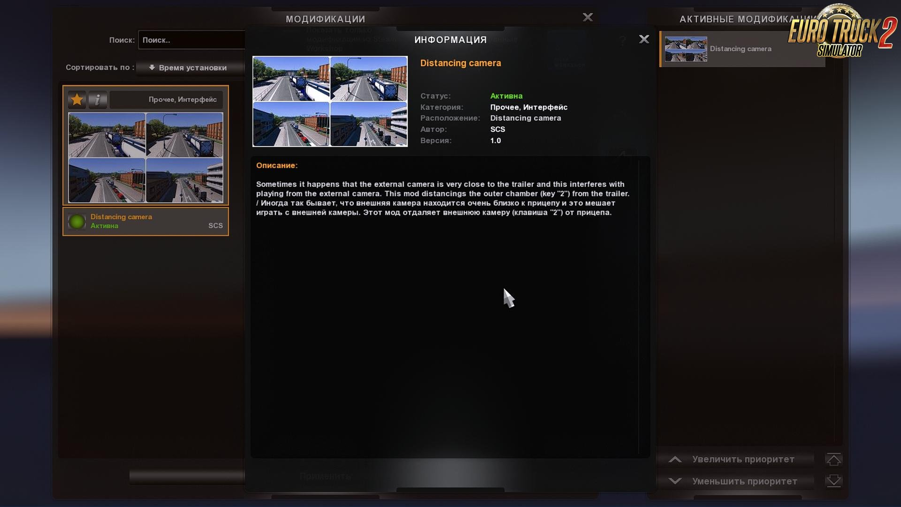 Sometimes it happens that the external camera is very close to the trailer and this interferes with playing from the external camera. This mod distancings the outer chamber (key "2") from the trailer. Tested in game version 1.31.x. Credits: TSWmods |