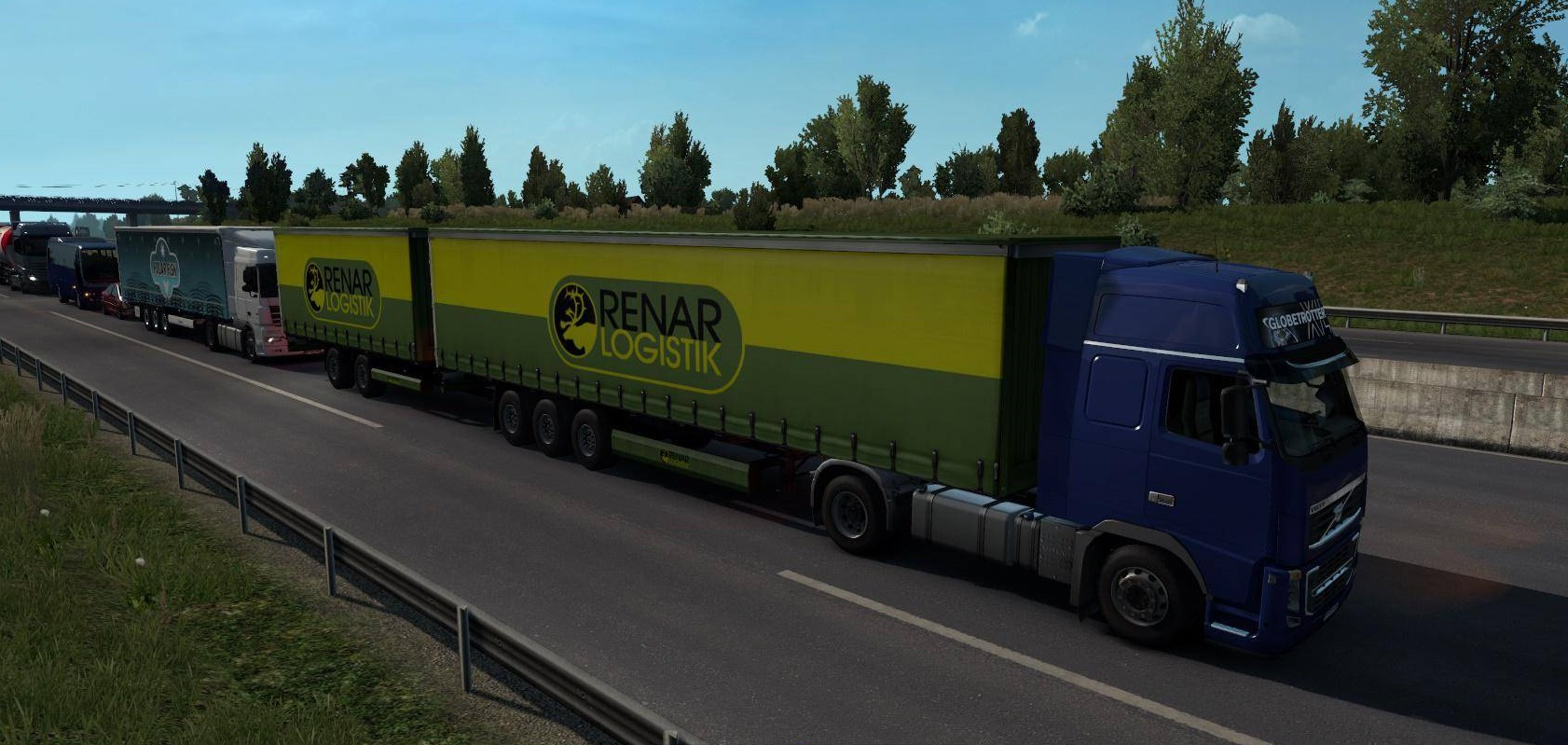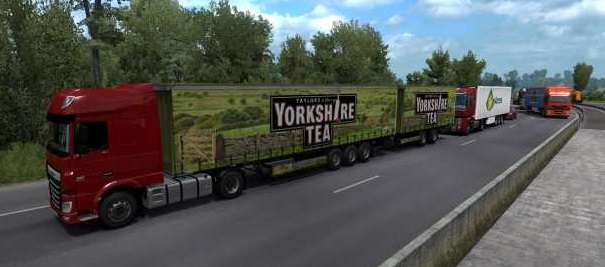 The return of double trailers for the SCS companies that have them for cargo-hauling. I very much doubt it will work under any version of ETS2 prior to v1.36, and it needs the Scandiwegia DLC. I have also included trailers for Ford, Yorkshire Tea* and an alternative Volvo one, because I am Nice. The trailers currently appear in: Algeria Argentina Belarus Brazil (all of it) Chile Denmark Egypt Finland Germany Kazakhstan Libya Morocco Netherlands Norway Paraguay Russia (also all of it) Spain Sweden Tunisia Ukraine Uruguay or at least will do if there are actually roads for them to appear on. I’m not sure how far EAA has spread their tentacles over South America. Included in the /def/country folder are text files with the spawn frequency in them and a Windows batch file – populate.bat – to copy them to the relevant sub-directories. This will be of no use if you’re running on a Mac or under Linux, obv. Sorry. Trucks and trailers are all bog-standard SCS ones. Credits: Mr.Larrington Credits: Mr.Larrington |