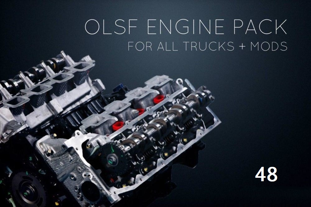 Compatible versions: ETS2 1.35 – 1.37 Open Beta —————————————————————————————— Supported trucks: – DAF XF, DAF XF Euro 6 – Iveco Hi Way, Stralis – MAN TGX, TGX Euro 6 – Mercedes Actros, Actros 2014 – Renault Magnum, Premium, T – Scania R 2016, Scania S 2016 – Scania R, Streamline, T (SCS/RJL) – Volvo FH16, FH 2012 —————————————————————————————— – Immediate delivery of maximum torque at low rpm – Constant delivery of power up to 2500 rpm – Low internal friction to reduce fuel consumption and improved throttle response – Very complex torque curve and power parameters calculated realistically —————————————————————————————— Engines included: OLSF V6 Efficiency Plus XG —> 510 HP / 2400 Nm / Redline: 2000 rpm OLSF V6 Efficiency XG —> 630 HP / 3000 Nm / Redline: 2000 rpm OLSF V8 Efficiency XG —> 780 HP / 3700 Nm / Redline: 2000 rpm OLSF V8 Performance XG —> 950 HP / 4500 Nm / Redline: 2500 rpm OLSF V8 Performance R XG —> 1200 HP / 5700 Nm / Redline: 2500 rpm OLSF V12 Efficiency XG —> 1150 HP / 5400 Nm / Redline: 2000 rpm OLSF V12 Performance XG —> 1400 HP / 6600 Nm / Redline: 2500 rpm OLSF V12 Performance R XG —> 1790 HP / 8500 Nm / Redline: 2500 rpm OLSF V12 Extreme R XG —> 2085 HP / 9900 Nm / Redline: 2500 rpm OLSF V12 Extreme RS XG —> 2400 HP / 11400 Nm / Redline: 2500 rpm Credits: OLSF Credits: OLSF |
