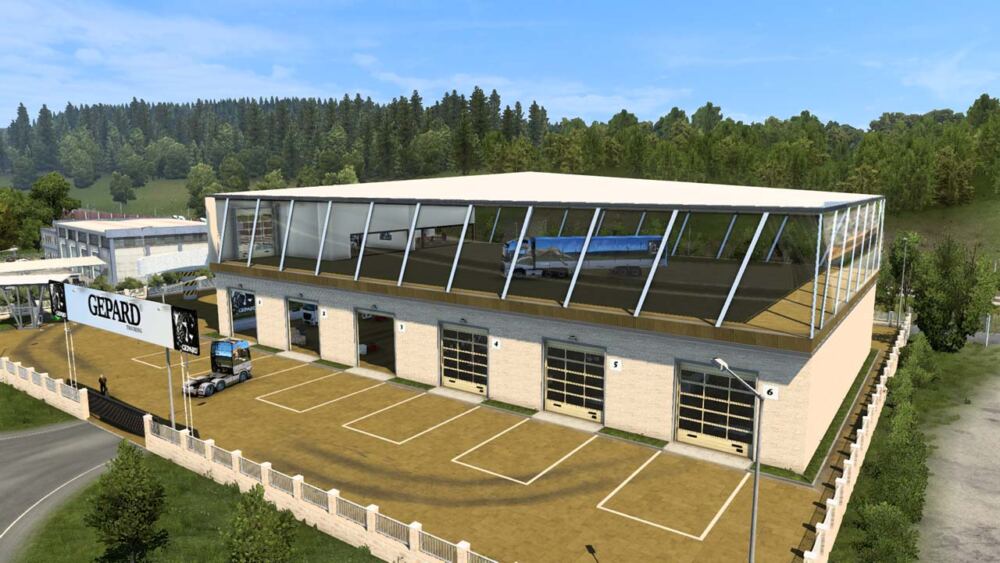 Update: v2024.1 -Fix Bug on DLC West Balkans Pack includes: -Expensive Garage Scandinavia D-Deck -Company Player Logo What you get Expensive Garage Scandinavia D-Deck changes – Completely revised design inside and out – Whole area passable inside and outside – Illuminated company logo – 9 gates that can all be opened and driven on – Second exit gate in the rear wall of the hall – Workshop: 3 ramps, 2 passable, 2 with random truck allocation – Workshop: workshop pit – driveway to the second floor – 5 parking spaces with random vehicles – New gas station – Automatic roller shutter at site entry / exit – Animated workers, guard and dogs – Sitting area with pictures and calendar – second floor with Rolling gate entry-exit Office with staff and conference room Storage area for trucks and trailers Panoramic view of the city Main Mod: Credits: Swini Credits: Swini |