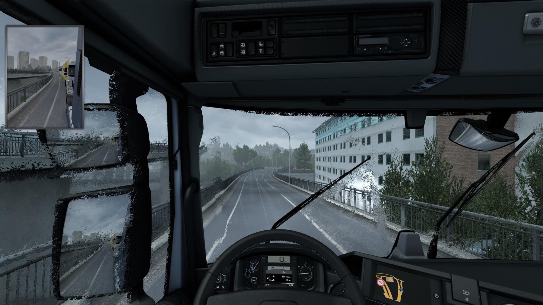 CHANGELOG 1.3 Fix low rain blobs . Better compatible with all grafic mods. now need to edit def glass files in non scs trucks. Improve the rain experience This mod works perfectly with the original ETS 2 trucks. 1.38 \ 1.39 To work properly on edited trucks or mod trucks you have to edit the file located in \ def \ vehicle \ truck \ NAMEOFTRUCK \ interior \ glass.dat or glass.sui and change it to “drop_size_maximum: 0.028” in the front glass defenition Hope you like! This mod works perfectly with the original ETS 2 trucks. To work properly on edited trucks you have to edit the file located in \def\vehicle\truck\NAMEOFTRUCK\interior\glass.dat or glass.sui and change it to "drop_size_maximum: 0.028" This work with other grafik mods to like brutal weather and others . only need put me on the top! Credits: SrInsane |