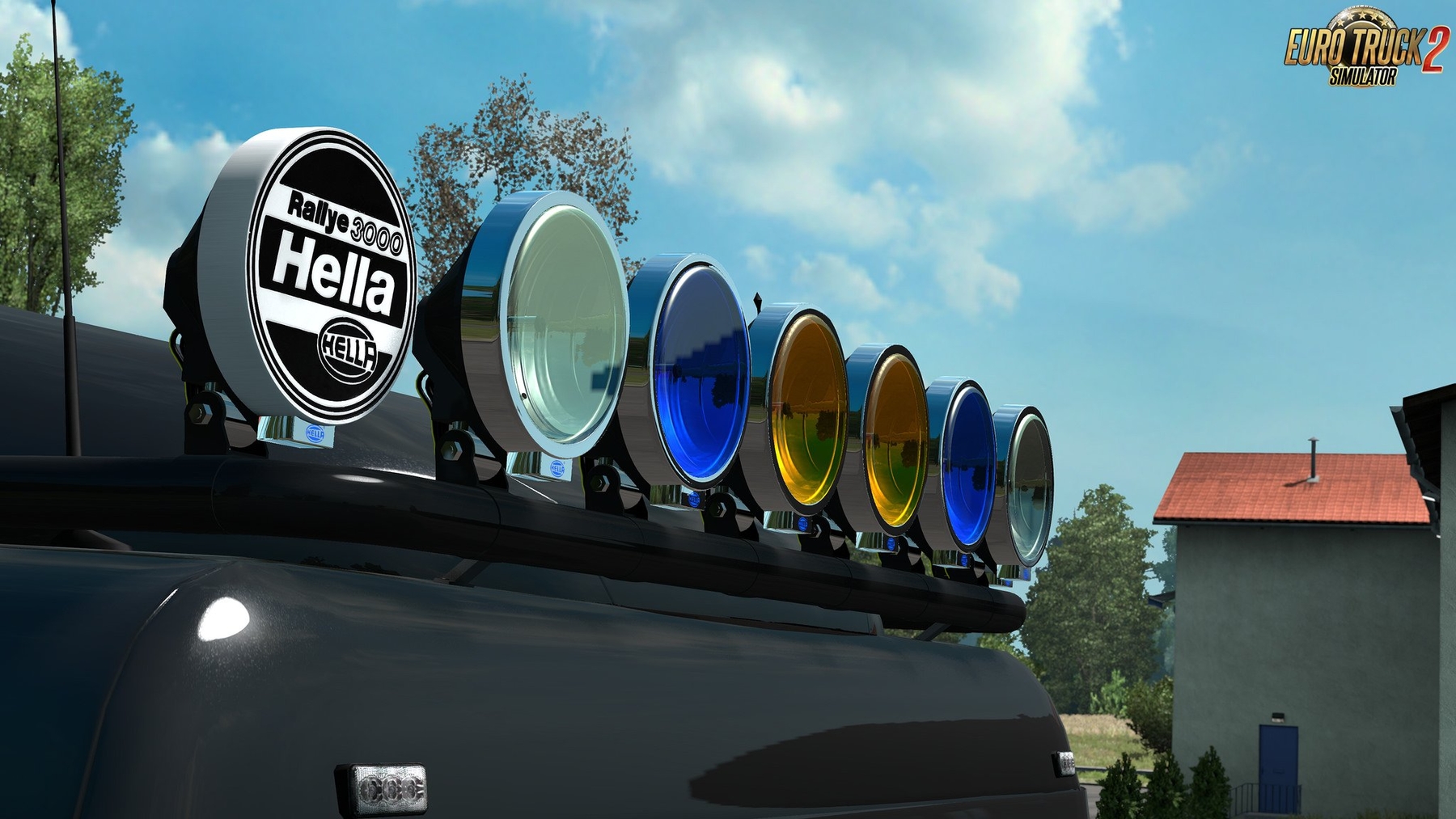 This is a custom edit of the Hella Rallye pack by Niskarli. Updated to work on the latest game version, includes new light-mask, flares, remade material setup, added second light bulb for low beam flare. New version 1.2: -Added covered variant -Completely new light mask -Completely remade reflector normal map -New flares -Updated flare settings -Removed custom range add-ons -New workshop icons Also as a side note: I unified the illumination range to a proper long range on all colours so the custom range add-ons are obsolete as of this version. Features: -HQ 3d model -Custom flares -Custom light-mask (low beam and high beam) -3 variants: plastic, paint, chrome -3 reflector colours: white, yellow, blue -Covered variant (no light) *Make sure you have the aux lights enabled in the lights in-game menu (F4 on the keyboard). Credits: obelihnio, Niksarlı |