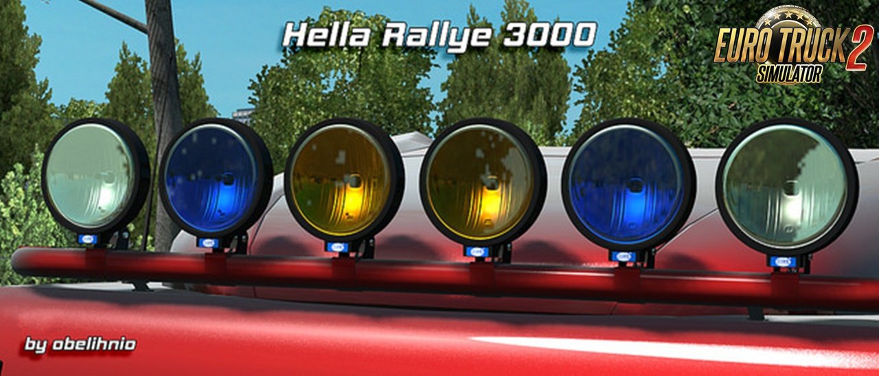 Changelog v1.5 -1.40 game version compatible -Updated flares -Updated light-masks -General fixes in 3D models -Updated materials -New light bulb models -Removed positional/low beam lightmask and flares form single bulb models. This mod brings a set of Hella Rallye 3000 spotlights. Mod is fully stand-alone and includes features listed below. Features: HQ 3d model Custom flares Custom light-mask (low beam and high beam) 5 variants: full plastic/paint, plastic/paint with chrome ring, full chrome 3 reflector colours: white, yellow, blue Covered variant (no light) 2 lamp types: single (high beam only) and dual bulb (positional + high beam) Credits: obelihnio, Niskarli |