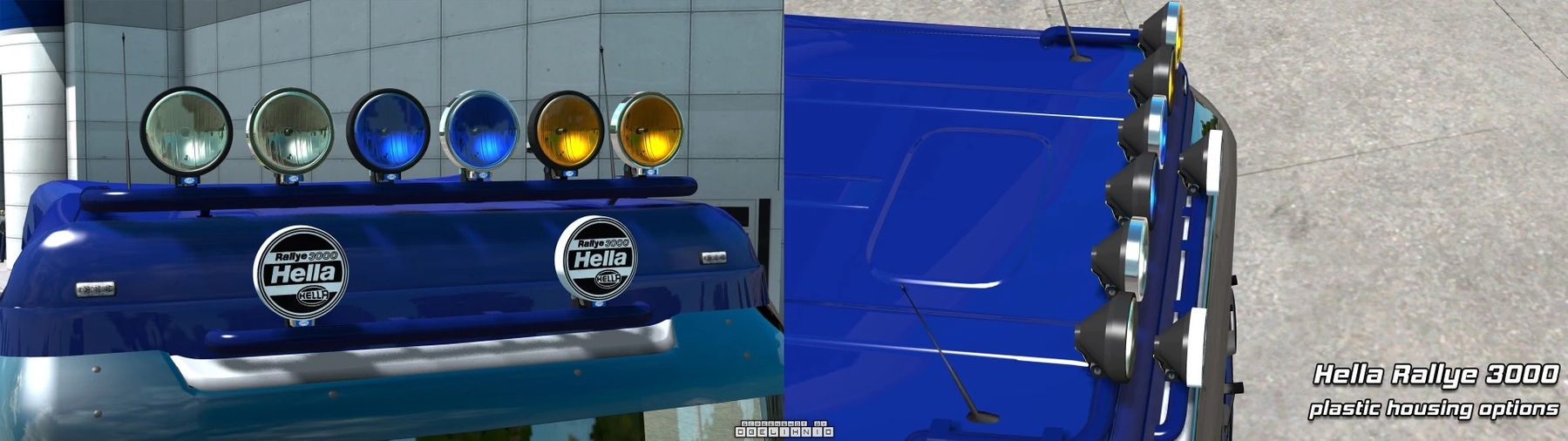 HQ 3d model Custom flares Custom light-mask (low beam and high beam) 5 variants: full plastic/paint, plastic/paint with chrome ring, full chrome 3 reflector colours: white, yellow, blue Covered variant (no light) 2 lamp types: single (high beam only) and dual bulb (positional + high beam) 26 April – Support for 1.44 game version Credits: obelihnio Credits: obelihnio |