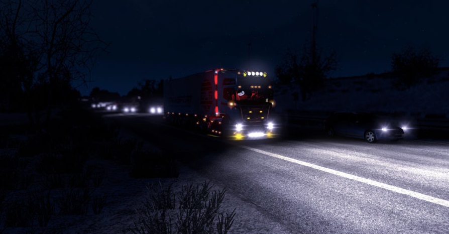 More bright head lights for all default trucks. it’s a remake of Superlights mod with warm colours for street light and toned down power for them. Also, a quick improvement of the flare of the AI traffic, now visible from far distance. Credits: Augustine Credits: Augustine |