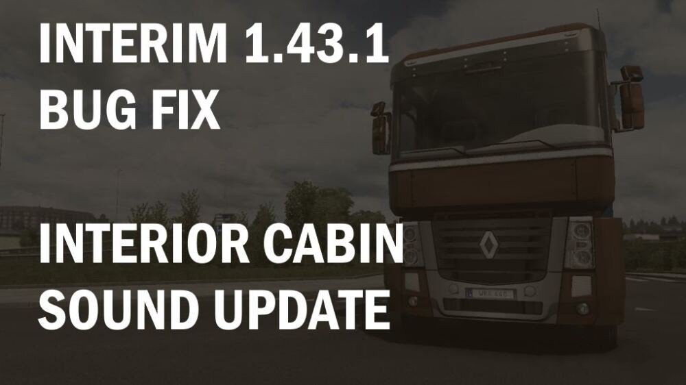 This mod adds the following fixes for ETS2 base game trucks affected by the 1.43.1 interior cabin sound update. * Balanced sounds: Stopped interior sounds from being louder than when the camera is outside and next to the engine. * Reduced the excess reverb in the cabin. * Lowered sound volume of high pitch sounds such as turbo when windows are closed. It is useful for those preferring a similar sound experience that 1.42 provided. The Sound Fixes Pack is also providing these fixes, however they will expire on December 14, 2021 for compatibility with future 1.43 sound mods. The extra few days is to buy time for other sound modders to adapt. Therefore, this mod is intended as an interim fix for default trucks in 1.43.1. Modders are welcome to use the baseline settings provided in this mod for sound_effects_units.sui Tip: Do not stray too far in increasing gain values, because it may affect all sounds such as traffic and ambient sounds. Credits: Drive Safely Credits: Drive Safely |
