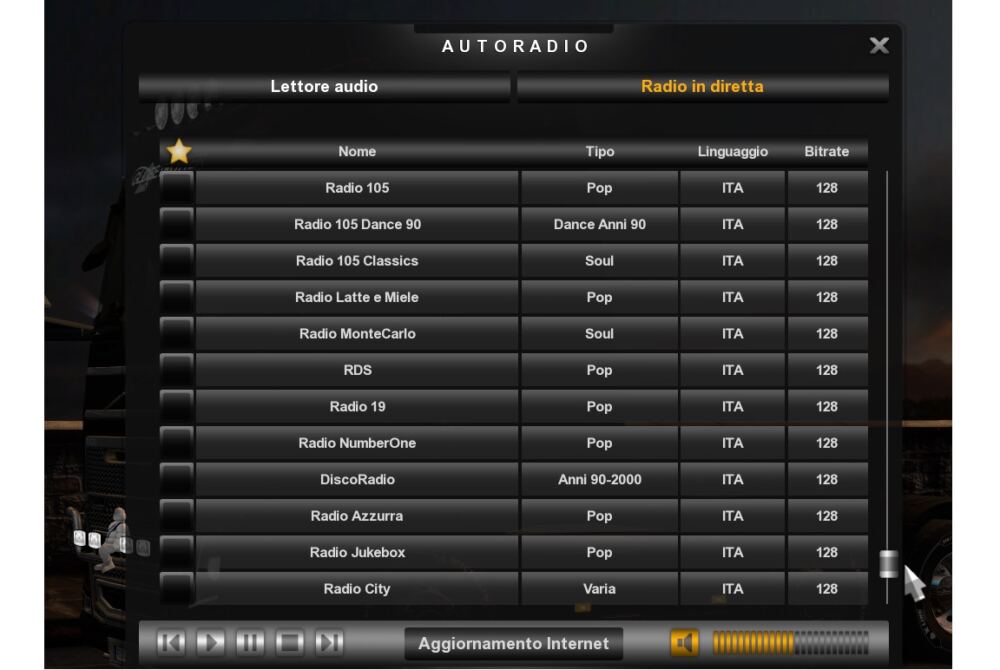 Here you can find a list of Italian Radio Stations URL, to use into the game. Every URL was tested by me, i can guarantee it work. In the MOD, you can find some of the most famous radio stations in Italy, together with other less know. If some users wants some particular station to add, or wants to report some problems with the MOD or some radio stations, he can contact me sending an mail to this e-mail adress: Dexter1991dg@gmail.com In this way, i can read you more fast than commenting the MOD. ____________________________________________________________ Qui potete trovare una lista di radio Italiane, dalle più famose alle meno famose, tutte perfettamente funzionanti (le ho testate una ad una). Nel caso aveste qualche particolare radio da richiedere, potrete farmelo presente, e cercherò di provvedere ad aggiungerla in tempi brevi. In caso di problemi con la MOD o con qualche stazione radio, vi invito a segnalarmelo, preferibilmente tramite e-mail ( Dexter1991dg@gmail.com ), o altrimenti commentando la MOD in basso (in questo caso potrei non essere rapido a rispondere). La lista è in costante aggiornamento, in seguito rilascerò delle nuove MOD aggiornate. Qui sotto, la lista delle stazioni radio che potrete trovare: -Antenna 1 -Ciccio Riccio -Dimensione Suono Roma -Dimensione Suono Soft -DiscoRadio -DJ Osso Radio -DMR Italia -Easy Network -ElleRadio -FM Italia -Gamma Radio Golden Hits -House-Nation -Idea Radio -Lady Radio -Linea Radio Savona -Milano Lounge Radio -Modena RadioCity -Mondo Radio -MultiRadio -Onda Radio Firenze -Otto FM -Radioanimati -Radiobombo -RadioDanza -RadioFreccia -Radiolina Atripalda -Radiostuni -Südtirol 1 -Radio Agorà 21 -Radio Alcamo Centrale -Radio Birikina -Radio California -Radio Campania -Radio Ciao -Radio Circuito Solare -Radio City – Solo Grandi Successi -Radio City – Solo Musica Italiana -Radio Company (e le tematiche Fitness/Global House/Reggaetown/Rock/90) -Radio Cuore -Radio Dancefloor 90s -Radio Del Mar -Radio Deltauno FM -Radio Disco Fritto Italia -Radio Dolomiti -Radio Eco Sud -Radio Effe Italia -Radio FLY Italia -Radio Frejus -Radio Gamma Puglia -Radio Gamma Stereo -Radio Garda FM -Radio Gelosa -Radio Giulia – La Radio Italiana -Radio Globo -Radio Gold -Radio Ibiza -Radio Incontro -Radio Italia Anni 60 -Radio Jukebox -Radio Kiss Kiss (e le tematiche: Disco Party / Gold Rock / History Kiss / History Lounge / Hit / La Notte Vola / Latina / Sanremo / San Valentino / Soft / Trap / +1) -Radio Kiss Kiss Napoli -Radio LatteMiele -Radio LDR -Radio Linea Italia -Radio Lombardia -Radio Luna -Radio Mambo -Radio Manila -Radio Margherita -Radio Margherita Giovane -Radio Marilù -Radio Milazzo 100 -Radio Millennium -Radio Mi Piaci -Radio Modena -Radio Movida -Radio Nonsolosuoni -Radio Nostalgia -Radio NumberOne -Radio NumberOne Dance -Radio Onda Ligure 101 -Radio Orizzonte Molise -Radio Padova -Radio Parsifal -Radio Party Groove -Radio Pausini -Radio Piterpan -Radio PNR -Radio Puglia -Radio Punto Nuovo -Radio Punto Stereo -Radio Punto Zero -Radio Reporter 99 -Radio Sabbia -Radio Sanremo -Radio Shake Hit -Radio Sicilia Express -Radio Sound Bari -Radio Spazio Italia -Radio Sportiva -Radio Stella -Radio Stop -Radio Studioplay -Radio Studio Delta -Radio Studio Emme -Radio Studio Più -Radio Studio 100 -Radio Subasio -Radio System -Radio Thor Italia -Radio Time -Radio Time 90 -Radio Touring Catania -Radio TRC -Radio Valle Camonica -Radio Vicenza -Radio Wow -Radio Yacht -Radio Zeta L’Italiana -Radio00 -Radio 103 -Radio 105 (e le tematiche: BSMNT / Classics / Dance 90 / Hip Hop & R’n’B / Hits / Indie / In Da Klubb / Mamacita / Miami / Music Star: Elisa – Jovanotti – Liga – Michael Jackson – Vasco / Rap Italia / Story / Trap / Zoo Radio / 2K And More) -Radio 19 -Radio 24 -Radio 80 -RAI Isoradio -RAI Radio 1 – 2 – 3 – 4 Light – 5 Classica – 6 Teca – 7 Live -RAI Südtirol -Ram Power 102.7 -RBC Grosseto -RDS -RDR Radio Dance Roma -Rete Uno Network -Rete 104 -Radio Montecarlo e Montecarlo 2 (e le tematiche: Acoustic / Buddha Bar / Cool / Disco Funk / Duets / Fitness / Great Artists / Hits / Italia / Lovesongs / Marine / Mina: Ieri Oggi e Domani / Music Star: Coldplay / Music Star: Franco Battiato / Music Star: George Michael / Music Star: Giorgia / Music Star: Pino Daniele / Music Star: Tiziano Ferro / Music Star: Zucchero / New Classics / Nights Story / Party / Radio Bau / Radio Kay Kay / Romantic Rock / Running / Vip Lounge / Voyage Voyage / 90 / 80) -RNC Radio Nuoro Centrale -Roma Radio Sound -RPZ Radio Punto Zero Tre Venezie -RSI Rete Uno (Rete Svizzera Italiana) -RTL 102.5 (e le tematiche: Best / Bro&Sis / Doc / Napulè / News / Romeo&Juliet) -R101 (e le tematiche: Baila Baila / Enjoy The Music / La Banda di R101 / Made In Italy / Today Hits / Urban Night / Your Love / 2K / 70 / 80 / 90) -Vintage MegaMix -Virgin Radio (e le tematiche: Hard Rock / Music Star / Music Star: Rolling Stones / Rock Alternative / Rock Classics / Rock Hits / Rock Party / Rock 70 / Rock 80) -70s 80s 90s RIW Vintage Channel AGGIORNAMENTO V. 4.0 1) Eliminate le seguenti stazioni radio, non più funzionanti: – Radio Crik Crok – Radio Garda – Tendenzia – Radio Italia 5 – Radio Orizzonti Activity – Radio Soffio – RGS Radio Grandi Successi 2) Sostituita “Roma Radio” (che non trasmette più) con “Roma Radio Sound” 3) Aggiunte le seguenti stazioni radio: – Radio Sanremo + tutte le webradio di Radio Kiss Kiss: (Disco Party / Gold Rock / History Kiss / History Lounge / Hit / La Notte Vola / Latina / Sanremo / San Valentino / Soft / Trap / +1 P.S. Altre radio da voi richieste, come Deejay, Capital, M2O e altre, sto provando a metterle, ma gli URL forniti non funzionano. Appena ne troverò di funzionanti, verranno immesse anche quelle. I prossimi aggiornamenti usciranno appena saranno disponibili nuove stazioni. Invito chiunque a farmi presente eventuali nuove stazioni desiderate, eventuali problemi di ricezione per alcune radio, e a rimanere aggi
