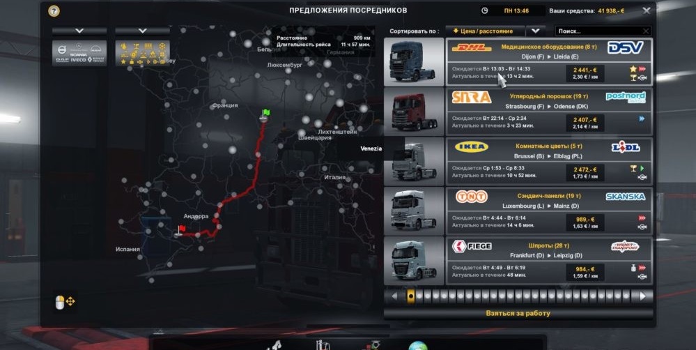 Compatibility: 1.32 All DLCs and Promods 2.31 Version: 1.32 fixes by Cheva Changelog 1.32 New parameters Patch by Cheva: – 1.32 new variables – Rewards (bonuses) increased in first levels – Long distances increased – Some coefficients added and changed – New yawn sounds Changelog [green]1.30 Semaphore Patch[normal]: – Semaphore definitions patched for Promods’s Ireland (provided by @rockandrole18) Changelog [green]1.30[normal]: – The version number of this mod will match the version of ETS2 in the same way ETS and ATS versioning was united. – Added Doubles Park XP Bonus. – Added Police (patrol) parameters. – Police (patrol) probabilities adjusted. – Police (patrol) “increase fine” set to “1”. – Police (patrol) time between fine set to 2 minutes. No cash grabbers here. – Ferries definitions fixed. Fix provided by “rockandrole18”. Thank you very much mate! – Truck to Trailer damage coefficient changed. It’s now 2% Changelog [green]1.3[normal]: – Separate definitions for Economy Data XP. In 1.27, they split the definitions in two separate files. – Revised Ferry Prices. Ferry fees reduced by 45%. – Revised Fuel Prices (April 27 2017). Changelog [green]1.2[normal]: – Added wear and tear data. – Reduced wear for engine, transmission and tires. – Reduced damage factor for Cabin, Chassis and Transmission. – Tires will last +/- 30.000km before replacement is needed. – Initial loan increased for 250.000 EUR. (after 50 jobs maintained) – Overdraft duration increased to 10 days. (prior 5 days) – Reworked (again) CoInsurance. Minimum value is now 2.500 EUR (prior 500). Increased evaluation ratio factors. Changes will be even more noticiable, mainly when it increases, a.k.a. slop driving. – Reduced average speed for expected time for deliveries calculations to meet the AETR (European agreement concerning the work of crews of vehicles engaged in international road transport) regulations. Original value was 62km/h, now 40km/h. – Experience Points for parking per difficulty added to the code. – Cargo Max damage increased to 20% before voiding the entire job contract (was 6%). 195 EUR deducted from payment for every 1 % of damage. Changelog [green]1.1.1[normal]: – Fixed abnormal France’s toll behavior. If toll places do not charge you, it’s a map related problem. The prices for the new toll places are set in map files not in defs. Changelog [green]1.1[normal]: – Speeding ticket price increased to 30 EUR (prior 10 EUR). – Speeding ticket probability is now 90% to simulate non-functional or broken radars. – Hired drivers will now quit on the 10th day if no truck assigned to them. This will allow truck reassignment between hired drivers with full leveled “distance” skill. – CoInsurance minimal payment is now 500 EUR (prior 200 EUR). Insurance evaluation rate are now more noticiable. Changelog [green]1.0[normal]: – Real Fuel Prices from Dec 3 2016. – Increased “No lights lights at night” traffic fine to 20 EUR (prior, 15 EUR). – Added information about CoInsurance in mod description and readme. – Semaphore yellow light time increased to 4 seconds interval to reduce red light fines due no enough brake distance. – Included fines information sources inside the package. Changelog [green]0.9.1[normal]: – Added Coinsurance (Thanks Piva) – Added new information in “mod_description.txt” and “readme.txt” about changes made by this mod. [orange]This mod is designed for maximum realistic simulation purposes. Keep in mind that every career is hard at the beginning and the $$ are low. Every mistake can cost you more than a few $$. Enjoy the journey, get experience and conquer the road transportation empire. Keep truckin’ Kablowsky[normal] Inspired by the work of DocMoriarty With collaboration from rockandrole18 [red]***** ***** ***** ***** ***** ***** ***** ***** ***** ***** FIRST OF ALL, MAKE SURE THE MOD IS ACTIVE AND WORKING BY LOOKING AT HIRED DRIVERS /DRIVERS TO HIRE PRICE PER KM. IT MUST BE 0.38 EUR/Km. IF NOT, MOVE THE MOD TO HIGHER PRIORITY IN MOD MANAGER. FOR PROMODS USERS, IT MUST BE ABOVE PROMODS DEFs. Credits: Kablowsky, Cheva |