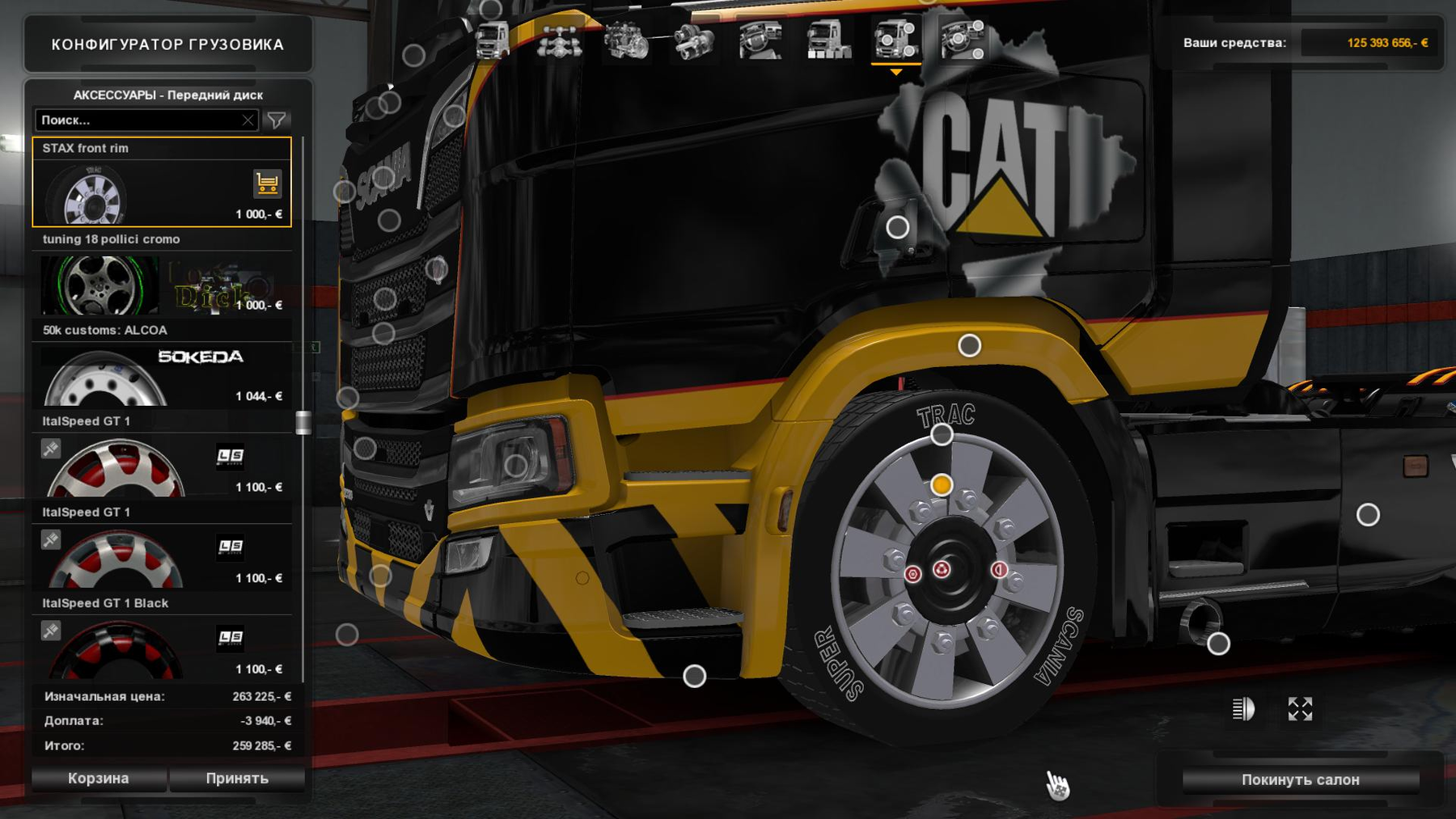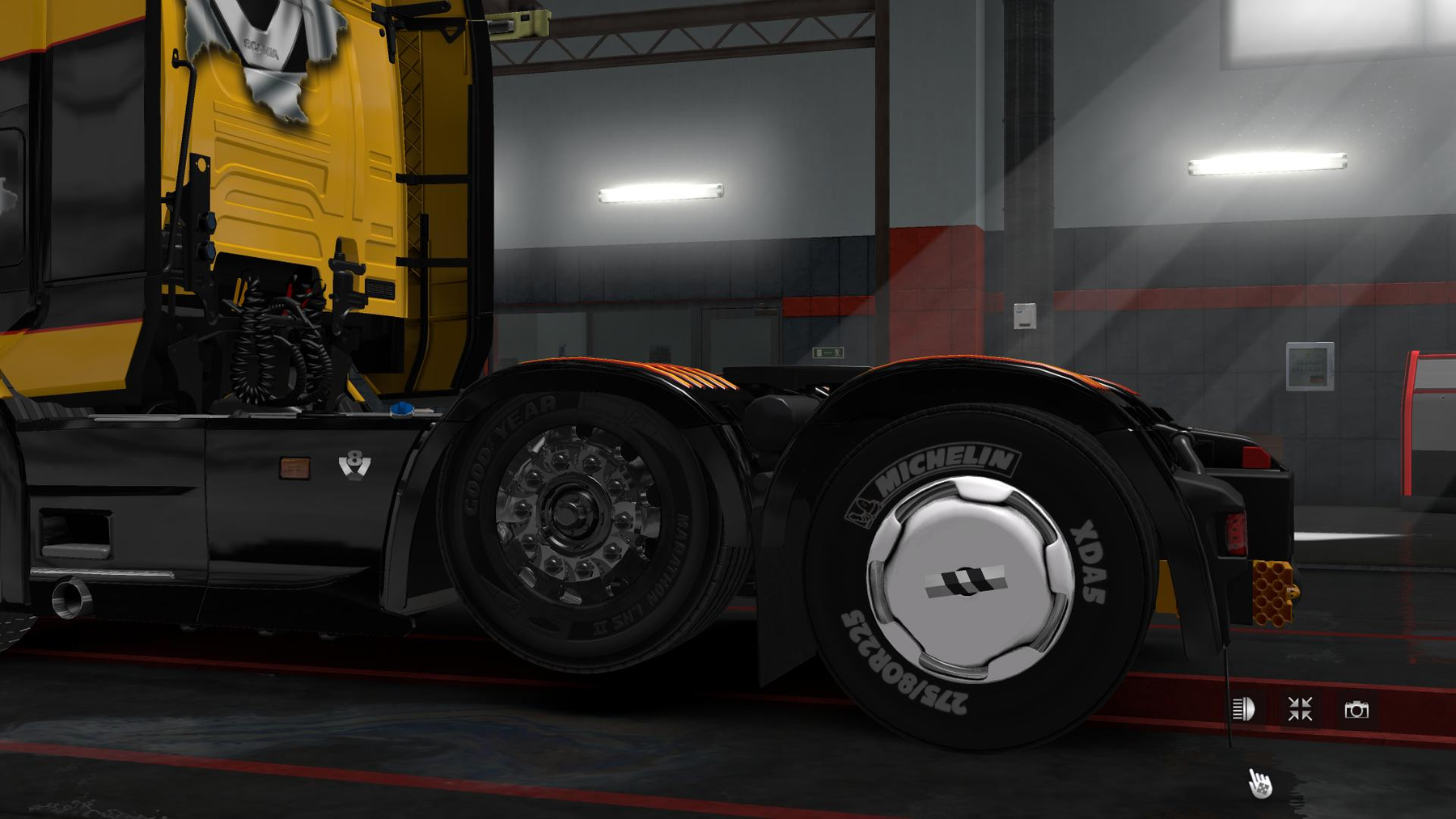 -Big package of road, off-road and winter wheels for all European, Russian and American tractors from different authors -In the package there is: For all tractor units: -50 varieties of tires -104 varieties of the disk -17 varieties of hoods -41 variety of hubs -11 varieties of nuts In previous versions: -Added 2 tires -Added 3 hoods -Updated 3D models -Added Michelin tires (several options) -Disks -Added wheels for trailers, including fashion (except trailers from DLC Heavy Cargo and heavy) -Added 14 tires (including off-road) -Added 19 drives -Added nuts and hubs – Added a steel version with a wide base for discs – Added new tire options Goodyear G661, G372A, G395 and Continental HDW – Added (for both trailers and trucks) new types of wheels: Goodyear G661 HSA 11R22.5 on Alcoa 8.25×22.5. Colors: matt, polished, chrome – Added a new rear hub cap: matt, chrome -Added white strips for some tires In the version 1.6 for Euro Truck Simulator 2 (v1.28.x, 1.30.x): -Added tires and wheels STAX -Added new tires Good Year -Added 3 types of hoods -Replacement of off-road wheels for other options -The tires of the brand ALCOA will now appear in the cargo traffic -For Scania trucks, the choice is slightly larger -Mod was tested on versions 1.28.х, 1.30.x Credits: Genius Credits: Genius |