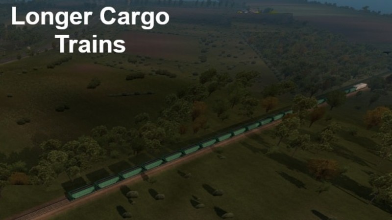 Cargo trains in Europe differ at maximum length depending on the infrastructure and equipment used. Finland manages trains about 60 cars, while France manages trains to about 20 wagons. Other countries act somewhere in the middle. The number of cargo train cars SCS is 6-10. The number of cargo cargoes in this mode is 11 and higher. Changes: eliminated conflict with traffic_storage_train * .sii Installation: The downloaded file is copied to the mod folder and connect in the mods manager. Credits Eddie Yantz Credits: Eddie Yantz |