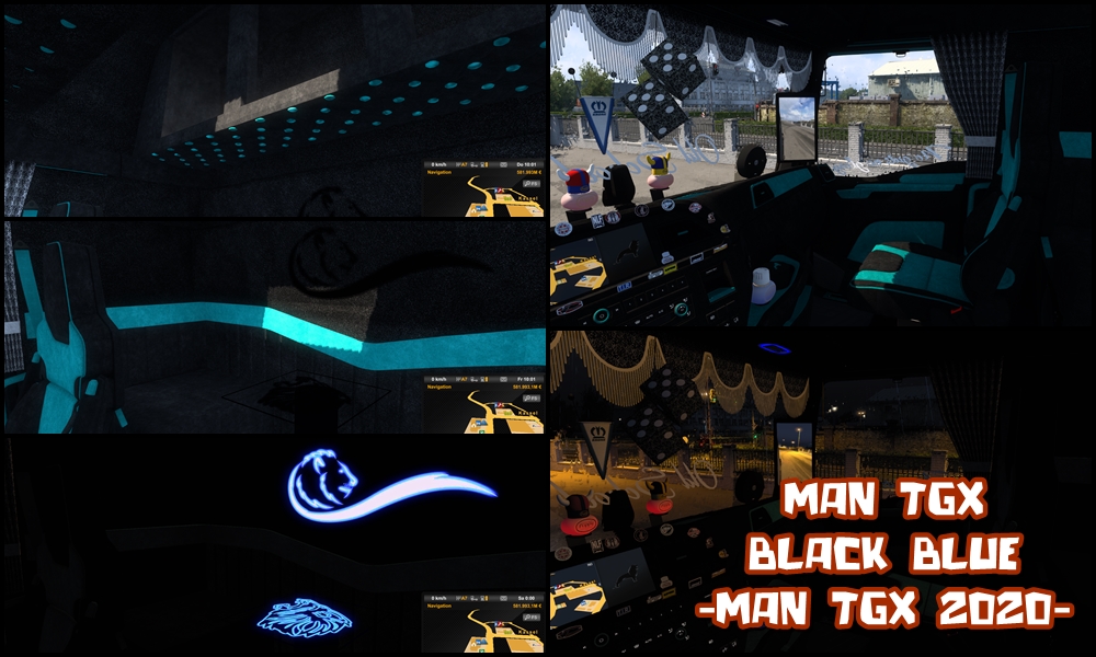 Heya -Description: Black Blue Interior -Truck: MAN TGX 2020 ( view pics ) Credits: DiggerModz Credits: DiggerModz |