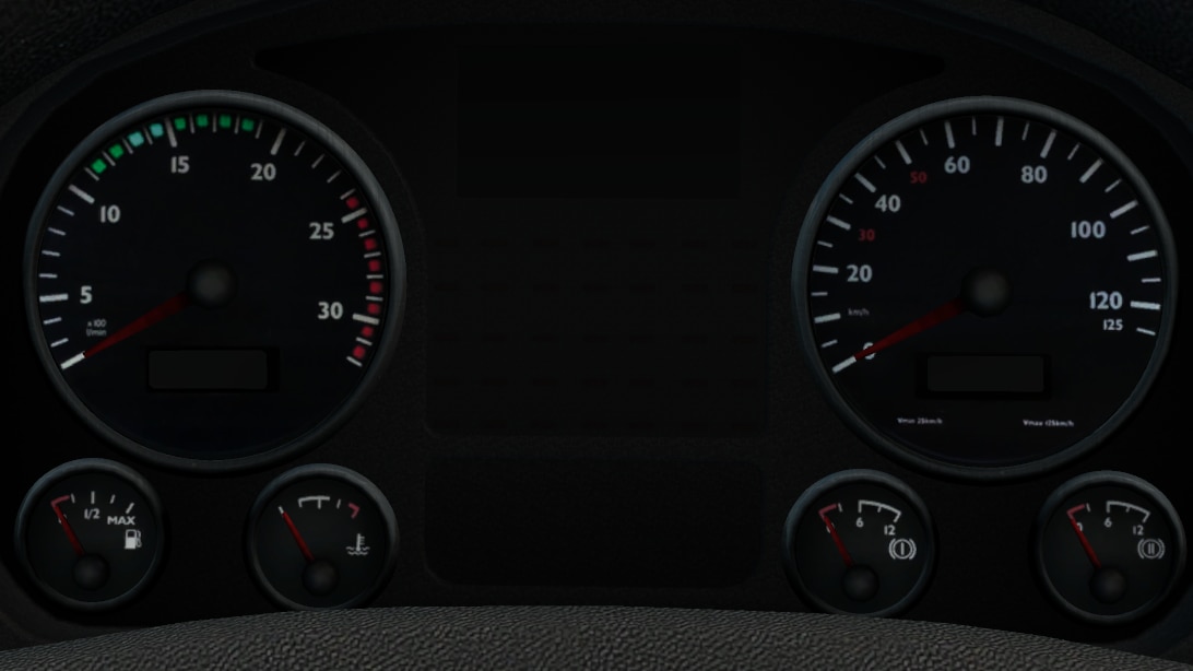 Realistic HD Gauges for MAN TGX Features: -Correct red backlighting -New UK interior Speedometer with MPH overlaid on KPH markings -HD Speedometer, Rev Counter, Fuel, Temperature and Pressure Gauges -Corrected incorrect Rev-counter graphics and needle range -Speedometer correctly goes to 125km/h as in real-life -HD textures for steering wheel buttons/MAN logo -HD textures for window controls -HD texture for MAN Basicline Stereo/Blaupunkt GPS system -3D knobs for MAN Basicline Stereo/Blaupunkt GPS system -Added new stereo texture -New indicator for headlights -Fixed blinker duration *MPH speed markings will only appear on RHD versions. Credits: Oscar |