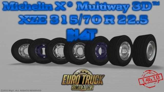 Features: – Michelin X Multiway 3D XZE 315/70 R 22.5 Tyres (Front, Rear & Trailer). – BigT Standard Rims (22.5″) in Matt, Gloss & Paintable (Front & Rear). – BigT Elite Rider Rims (22.5″) in Matt, Gloss & Paintable (Front & Rear). – BigT Alcoa Rims (22.5″) (Front & Rear). – The Rims have the scaling as SCS’s Standard rims, so all SCS’s hubs, nuts & covers fit on the new rims. – Since the new Rims have a full rim model, with a back side of the rim, that gives an awesome look of the entire wheel from the front and the back. – Not like the SCS Rims models, where they only have a front side. Compatible ETS2 1.46 Credits: scs, bigt Credits: BIG_T |