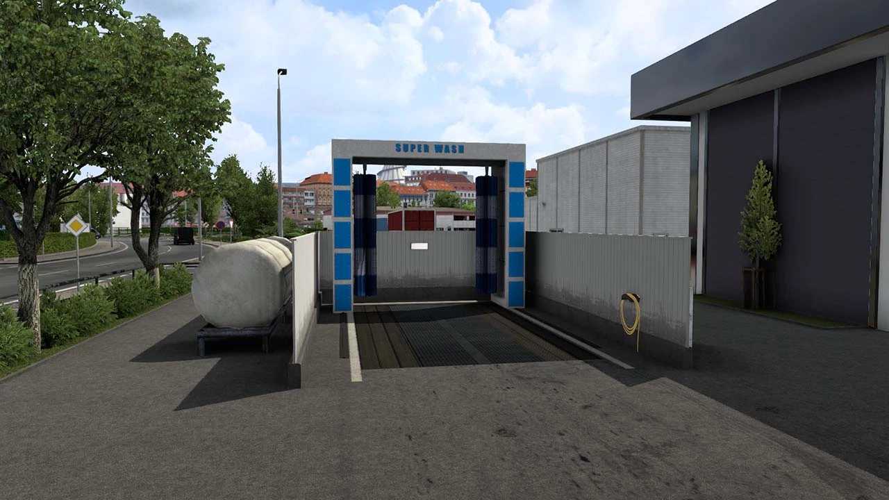 This mod replaces one of the service and repair stations. The station has been fully rebuild and adds some stuff like workers, parking trucks and an animated truck washing machine. Changelogs v1.01 Oct 30 Removed spray system from the washing machine which causes some weird glitches Animations for washing machine has been rebuild Credits d-luX Credits: d-luX |