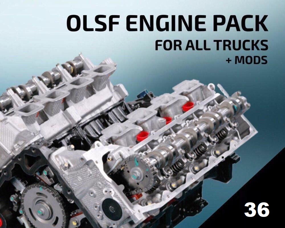 Compatible versions: ETS2 1.31- 1.34 Supported trucks: – All in-game trucks (SCS) – Scania R, Streamline and T (RJL) – Volvo FH (Eugene) – Volvo VNL (ARADETH) – Renault Range T – Mercedes Actros/Arocs 2014 (WTD) – Mercedes Actros MP1 – Iveco Strator (Shoofer) – DongFeng 450 (尛財迷) – Ford Cargo 2842 – Scania Touring – MAN TGA XLX – MAN F2000 – Hyundai Xcient The OLSF engines pushes the virtual motor controller to the limit, using all parameters available for mods. Advantages: – Immediate delivery of maximum torque at low rpm – Constant delivery of power up to 2500 rpm – Low internal friction to reduce fuel consumption and improve throttle response – Very complex torque curve and power parameters calculated realistically – Support for mods continuously expanded If you experience crashes with this mod, set high priority and buy a new truck. Engines included: OLSF V6 Efficiency NG (Redline: 2000 rpm) 630 HP / 3000 Nm OLSF V8 Efficiency NG (Redline: 2000 rpm) 780 HP / 3700 Nm OLSF V8 Performance NG (Redline: 2500 rpm) 950 HP / 4500 Nm OLSF V8 Performance Plus NG (Redline: 2500 rpm) 1090 HP / 5.200 Nm OLSF V8 Extreme NG (Redline: 2500 rpm) 1350 HP / 6.400 Nm OLSF V8 Extreme Plus Hybrid NG (Redline: 2500 rpm) 1350 HP + 1100 HP / 7.000 Nm – (Combined power: 2450 HP) Changelog (36): – ETS2 1.34 update support Credits: OLSF Credits: OLSF |