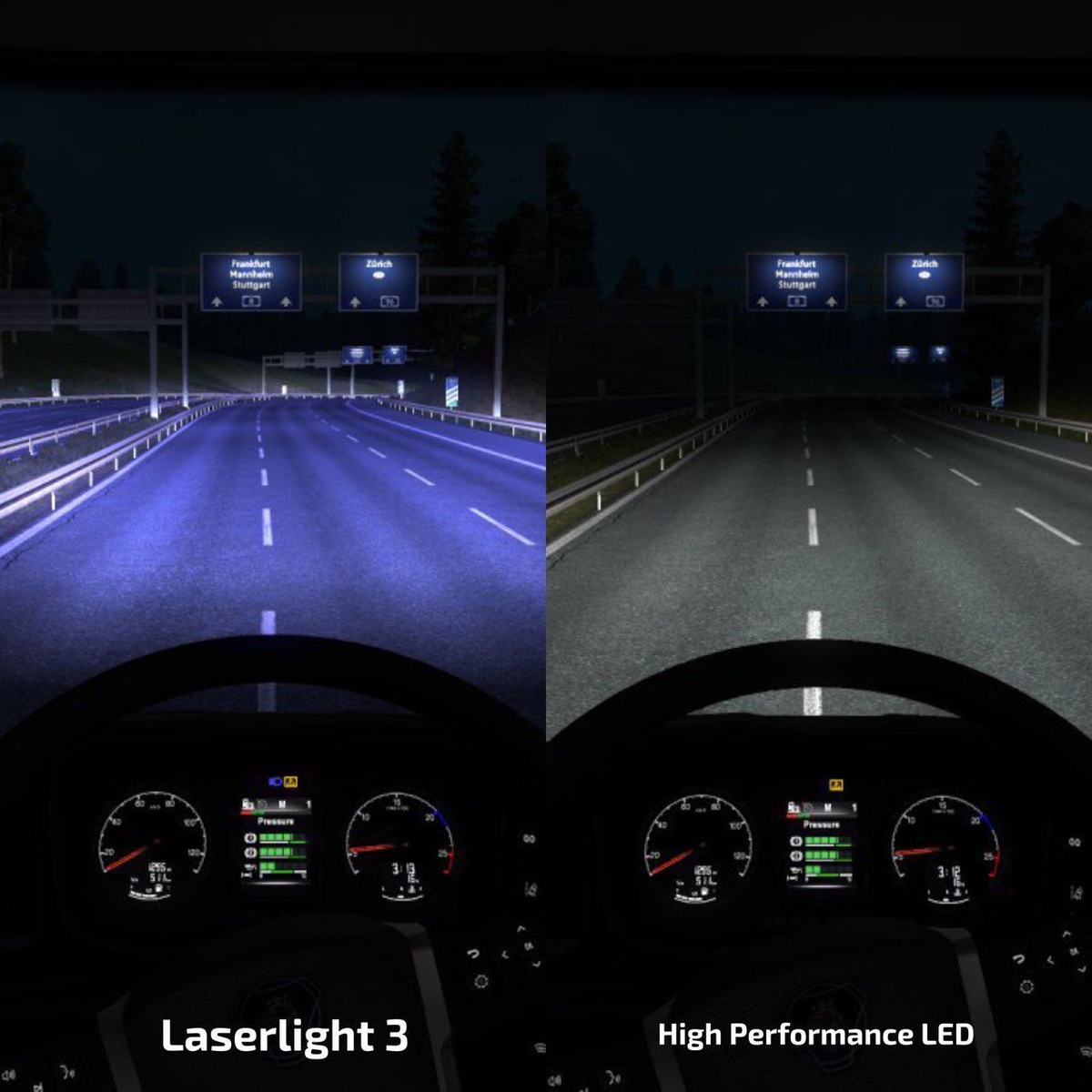 Compatible versions: ETS2 1.32 / 1.33 Supported trucks: Scania 2016 Inspired on high-end Audi car illumination system, this simple mod improves your vision and safety when drives on night. Replaces the “Exclusive” Scania headlights included in the game. Changelog (3.0) – ETS2 1.33 support – New long-range lights Credits: OLSF Credits: OLSF |