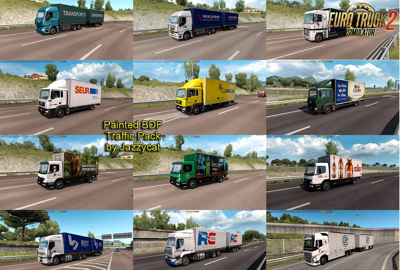 New Version 5.0: - added 12 new skins of European real companies, - optimized some models. This pack adds in traffic 355 BDFs with 703 skins of real companies. All standalone and works on any maps. For game version 1.34.x Compatible with all Jazzycat packs. Credits: JC |