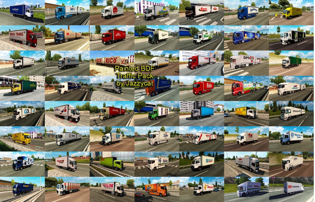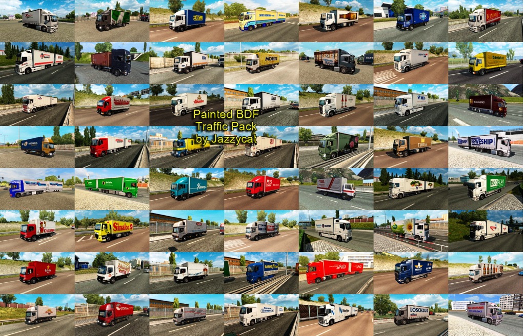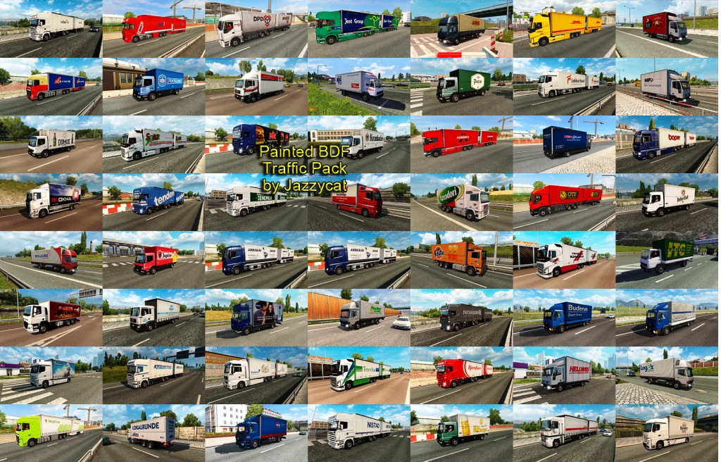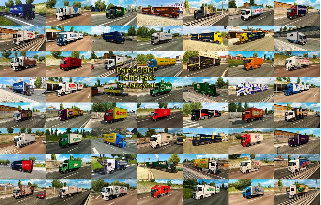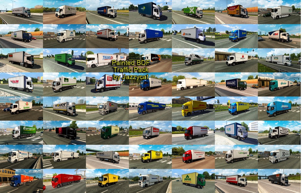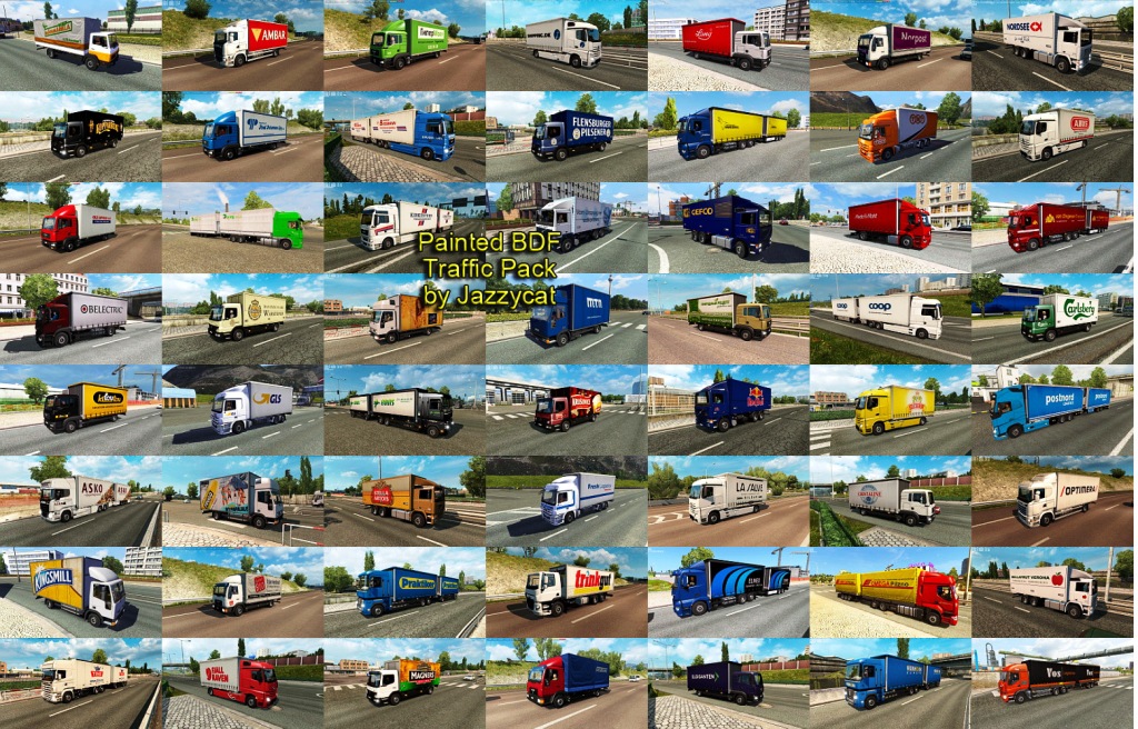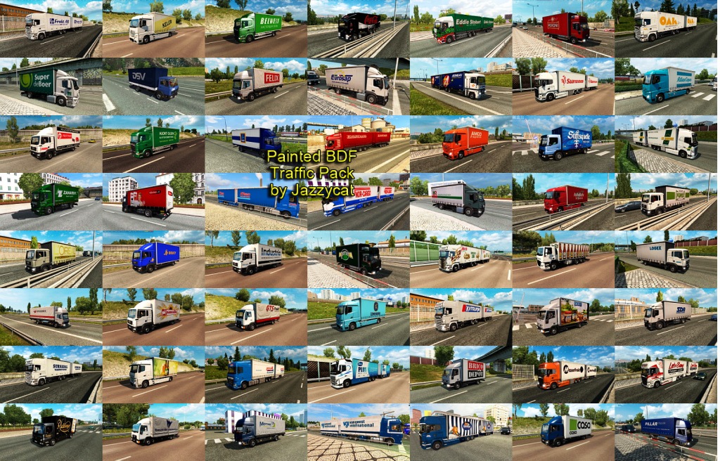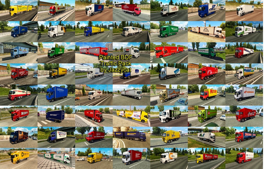 Pack adds in traffic 464 BDFs with 853 skins of real companies. All standalone, works on any maps. For version 1.35.x Compatible with all my packs. Credits: JAZZYCAT |