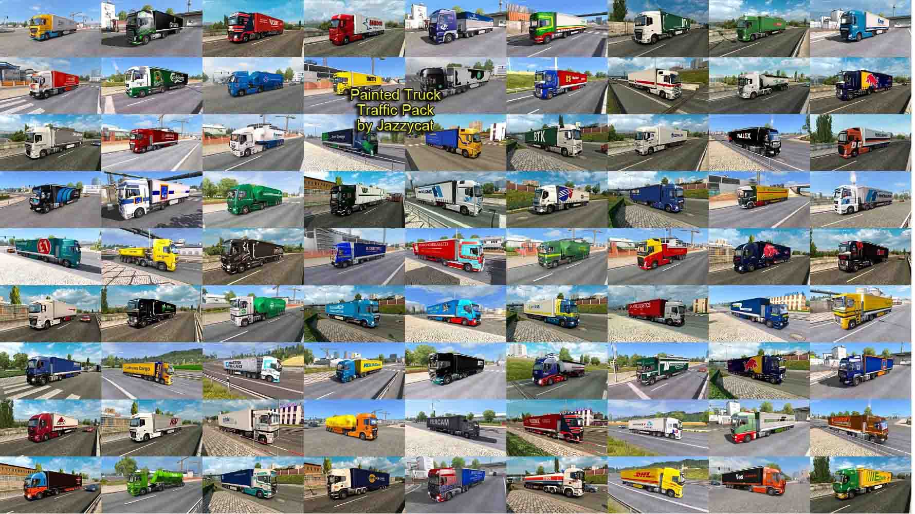 All standalone. Works on any maps. Tested on 1.41.x Compatible with all my packs. Skins: TerRay, ScaniaLAD, IJ's Mods, AJFV1998, Millsyb, Speedy66666, harry, Sky76, JE80, Trucker2011, KHAOS-XX, RCPHiL, S&S-Skinning, Fred_be, Woody, nportegies, Repin, BartvHam, Barttt, ThreeGlavModz, MaxLowe, Freddy Jimmink, Elitesquad Modz, Zoso, Bluemanc, stewowe, Toft-N, Sparrow, DHL, SISL, indian56, radar, Josiesomething, Oswald, Rudy, steini, senator07, lucianandrei, 19vvv05, ryaskins, n.velickovic, ed101, Slenderhun, Futrzaczek99, Farmerbeavis, eskolaite, kriistof, ECdesign, Dragan007, Stephana Stephen, Campinges, DavyBerto, DrRossi, DaviD_SRB, klunk, Bayun4ik, A.Mikhaylov, Pirelli81-HUN, Zeros, Fabry85, onurkull, sagittariusjr, Sogard3, Alik, TheNuvolari, KoviqkS, SilvaTrucker, R3AP3R, Roman71, Lost Virtual and others. Credits: Jazzycat |