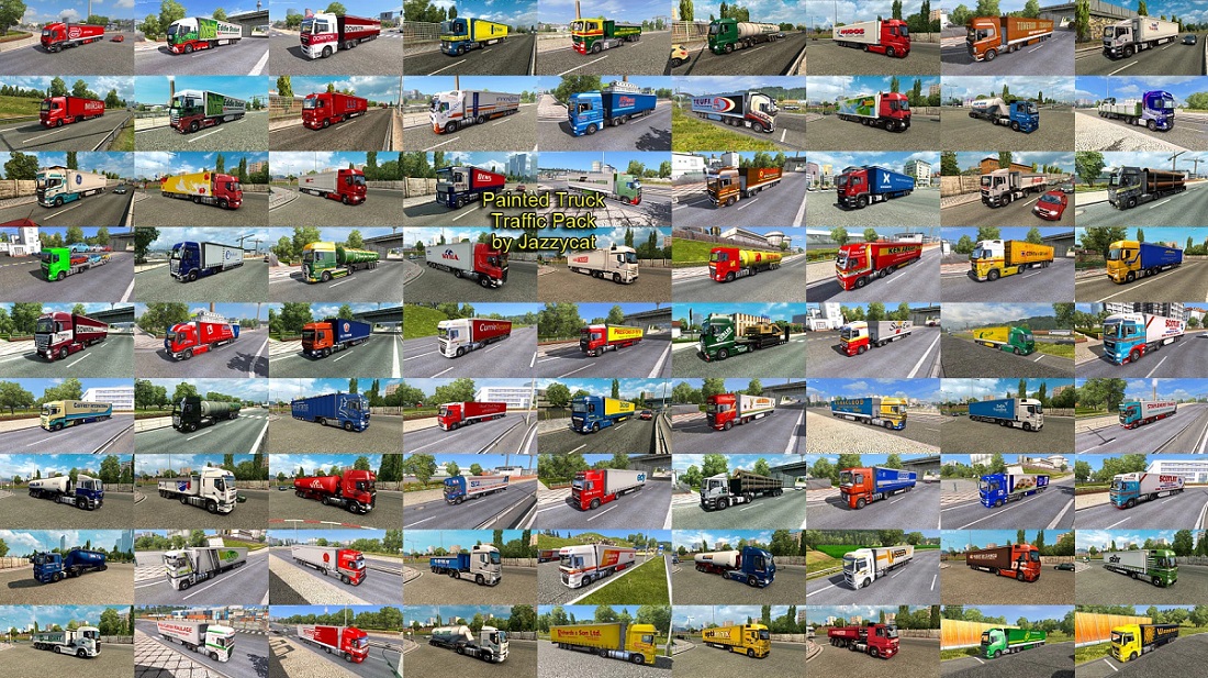 Pack adds in traffic truck+trailer combo with skins of 1028 real companies. All standalone. Works on any maps. Tested on 1.40.x Compatible with all my packs. Skins: TerRay, ScaniaLAD, IJ’s Mods, AJFV1998, Millsyb, Speedy66666, harry, Sky76, JE80, Trucker2011, KHAOS-XX, RCPHiL, S&S-Skinning, Fred_be, Woody, nportegies, Repin, BartvHam, Barttt, ThreeGlavModz, MaxLowe, Freddy Jimmink, Elitesquad Modz, Zoso, Bluemanc, stewowe, Toft-N, Sparrow, DHL, SISL, indian56, radar, Josiesomething, Oswald, Rudy, steini, senator07, lucianandrei, 19vvv05, ryaskins, n.velickovic, ed101, Slenderhun, Futrzaczek99, Farmerbeavis, eskolaite, kriistof, ECdesign, Dragan007, Stephana Stephen, Campinges, DavyBerto, DrRossi, DaviD_SRB, klunk, Bayun4ik, A.Mikhaylov, Pirelli81-HUN, Zeros, Fabry85, onurkull, sagittariusjr, Sogard3, Alik, TheNuvolari, KoviqkS, SilvaTrucker, R3AP3R, Roman71, Lost Virtual and others. Version 13.0 – added new companies: Lesmarc Logistica, ABF Spedition, W.Hall Limited, Pitarch Logistica, Riboni Trasporti, Schnellecke Logistics Credits: JC |
