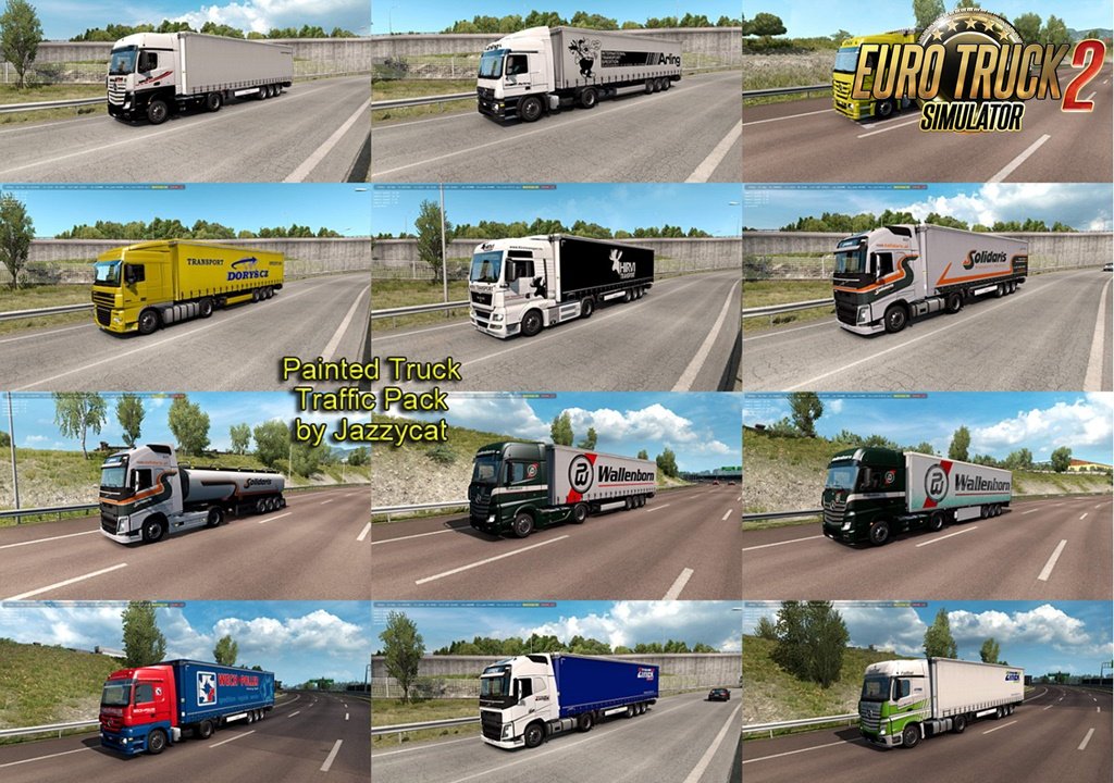 New Version 7.8: - added new companies: Dorys Transport, Wallenborn Transport, Arling Int. Mobeltransport, Athos Transport, Solidaris Transport, Weck+Poller Holding, Hirvi Transport, Amenda Transport, Zinek Transport. This pack adds in traffic truck+trailer combo with skins of 652 real companies. For game version 1.34.x All standalone and works on any maps. Compatible with all Jazzycat packs. Skins: TerRay, ScaniaLAD, IJ’s Mods, AJFV1998, Millsyb, Speedy66666, harry, Sky76, JE80, Trucker2011, KHAOS-XX, RCPHiL, S&S-Skinning, Fred_be, Woody, nportegies, Repin, BartvHam, Barttt, ThreeGlavModz, MaxLowe, Freddy Jimmink, Elitesquad Modz, Zoso, Bluemanc, stewowe, Toft-N, Sparrow, DHL, SISL, indian56, radar, Josiesomething, Oswald, Rudy, steini, senator07, lucianandrei, 19vvv05, ryaskins, n.velickovic, ed101, Slenderhun, Futrzaczek99, Farmerbeavis, eskolaite, kriistof, ECdesign, Dragan007, Stephana Stephen, Campinges, DavyBerto, DrRossi, DaviD_SRB, klunk, Bayun4ik, A.Mikhaylov, Pirelli81-HUN, Zeros, Fabry85, sagittariusjr, Sogard3, KoviqkS, Roman71 and others. Credits: JC |