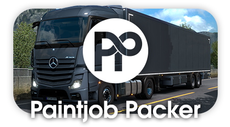 Paintjob Packer is a lightweight mod making tool for Euro Truck Simulator 2 and American Truck Simulator. It allows you to generate simple paintjob mods, with a focus on mods that support multiple vehicles. v1.6.1 - Added support for 4 mods: Dotec's Mercedes-Benz Actros MP2, PikPikker's Roman Diesel, Galimim's Volvo FM & FMX and Big Joe's Freightliner Coronado 122SD - Re-added support for YukonJack_AK's Western Star 4900 - Removed support for 3 mods by Lucasi that are now unavailable for download - Renamed DAF, Mercedes-Benz, Scania and Volvo trucks to match their in-game names - Changed invalid character detection to allow full stops/periods in names, just not at the end - Changed the folder path of modded vehicles to include the author name - Changed the term "hotfix" to "patch" in the update checker Features Support for player-owned trailers, including those from DLCs Support for trucks using the newer accessory-based paintjob system, like the Scania S and MAN TGX Euro 6 Support for as many vehicles as you like in a single mod Built-in support for >50 truck and trailer mods Support for separate paintjobs for each cabin of a truck, in case a single texture doesn't work for all of them Optionally includes readymade 4k templates for each vehicle Credits: Carsmaniac |